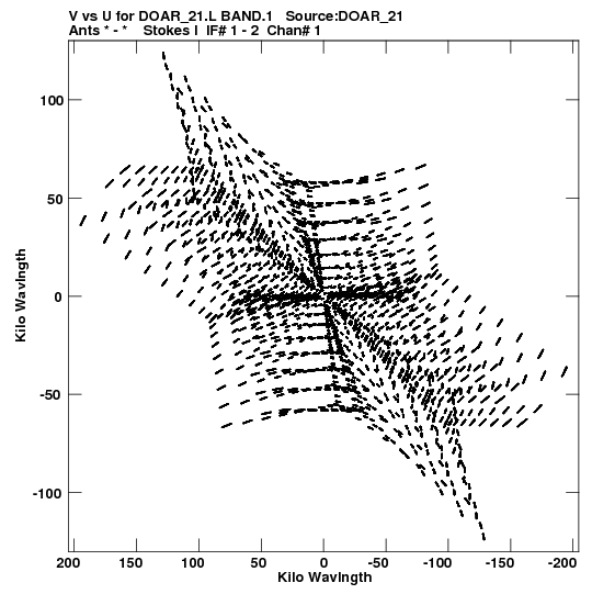 • Links is a collection of links that will show you the GIF uv-coverage and visibility plot for this data set in pop-up windows. See the README file on how to interpret these plots. They'll also get you to the project pipelining scripts and information log files as well as the full multi-source archive data on this project.