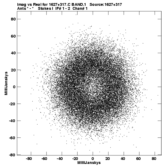 angle, the approximate noise level in prefixed units of Jansky, and a