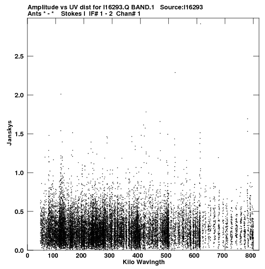 • Links is a collection of links that will show you the GIF uv-coverage and visibility plot for this data set in pop-up windows. See the README file on how to interpret these plots. They'll also get you to the project pipelining scripts and information log files as well as the full multi-source archive data on this project.