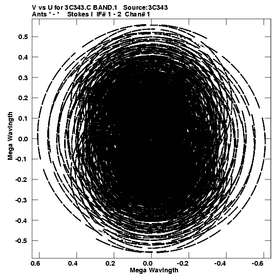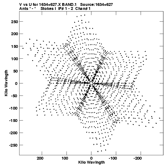 • Links is a collection of links that will show you the GIF uv-coverage and visibility plot for this data set in pop-up windows. See the README file on how to interpret these plots. They'll also get you to the project pipelining scripts and information log files as well as the full multi-source archive data on this project.