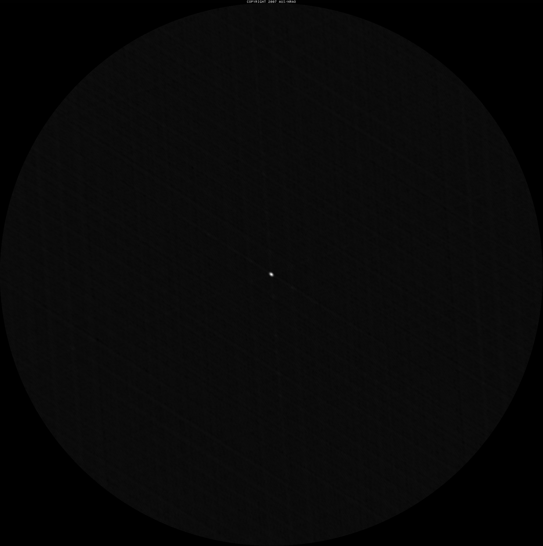• JPEG shows a thumbnail of the pipeline image. Clicking it will show you a larger version in the browser. Both JPEG images have a square transfer function to emphasize the lower levels a bit more; do not use the JPEGs for scientific purposes (see next). As a guideline, the lighter a thumbnail, the less difference between the peak flux density and the rms noise level, i.e., don't expect to see too much in in light gray images, especially if the rms noise given in the next column is in the order of microJy or less. On the other hand, dark images have a strong source in there somewhere.. (try looking in the center of the image).