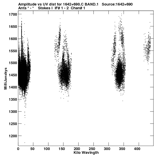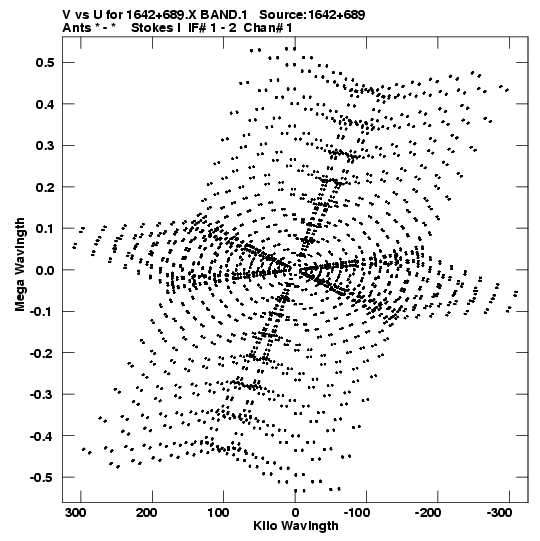 • Links is a collection of links that will show you the GIF uv-coverage and visibility plot for this data set in pop-up windows. See the README file on how to interpret these plots. They'll also get you to the project pipelining scripts and information log files as well as the full multi-source archive data on this project.
