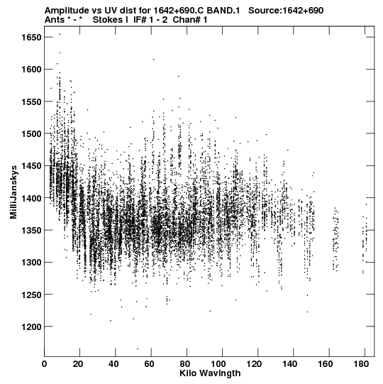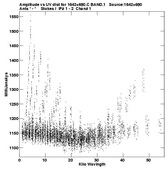 • UV Info lists the observed polarizations, shortest and longest VLA-arms (D=1km, C=3km, B=11km, A=36km, P=Pie Town link=75km), number of antennas used in the observation (though some may have been flagged as bad), the subarray setting of the array (1-5), a link to the calibrated single source uv FITS file and it's size (in red).
