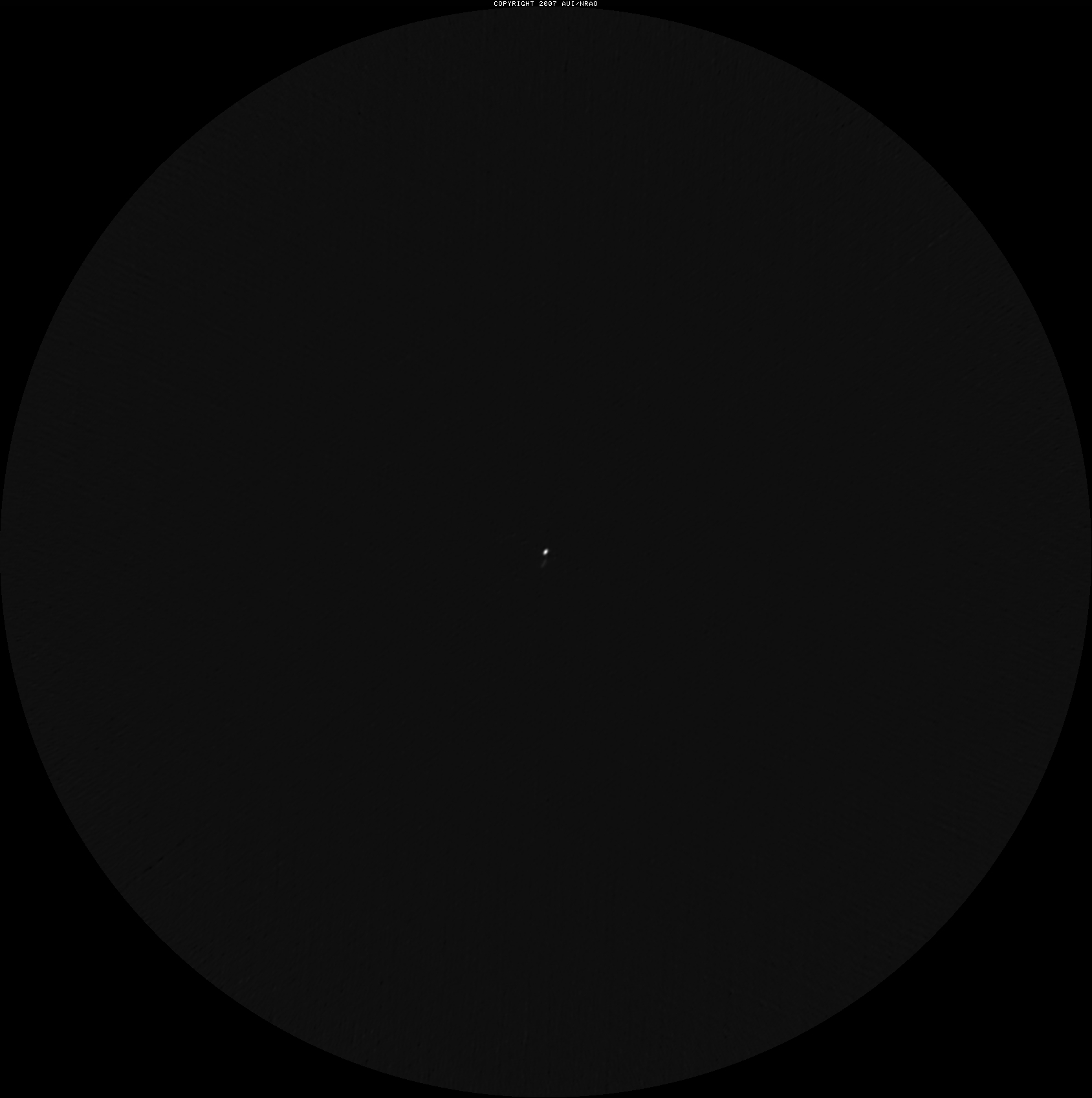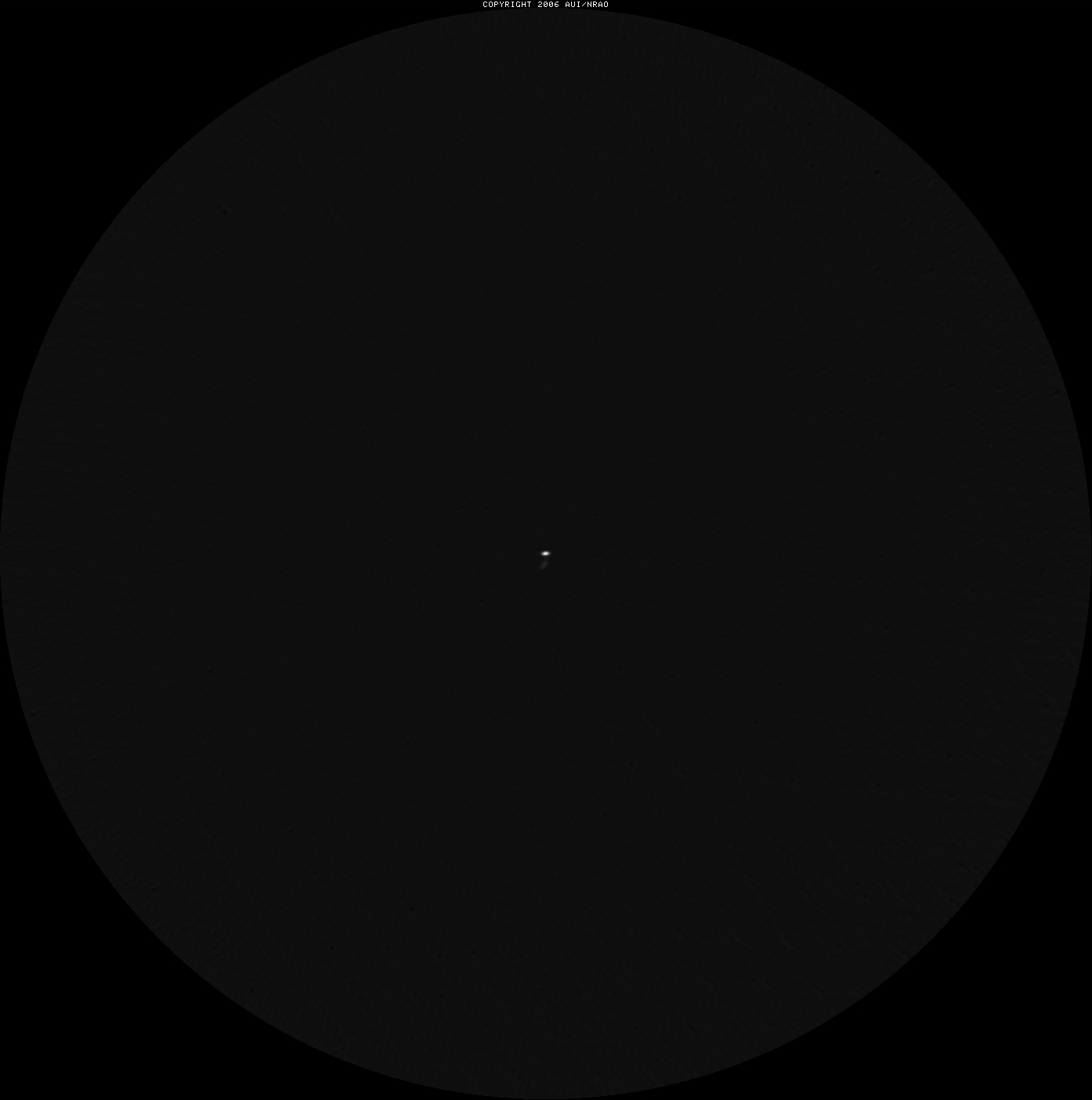 • JPEG shows a thumbnail of the pipeline image. Clicking it will show you a larger version in the browser. Both JPEG images have a square transfer function to emphasize the lower levels a bit more; do not use the JPEGs for scientific purposes (see next). As a guideline, the lighter a thumbnail, the less difference between the peak flux density and the rms noise level, i.e., don't expect to see too much in in light gray images, especially if the rms noise given in the next column is in the order of microJy or less. On the other hand, dark images have a strong source in there somewhere.. (try looking in the center of the image).