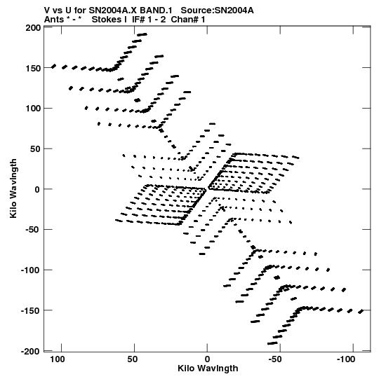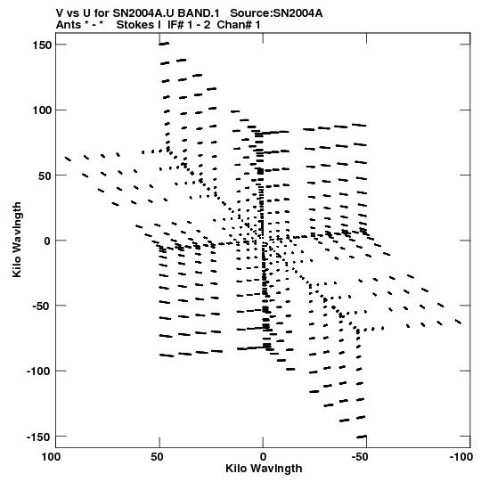 • Links is a collection of links that will show you the GIF uv-coverage and visibility plot for this data set in pop-up windows. See the README file on how to interpret these plots. They'll also get you to the project pipelining scripts and information log files as well as the full multi-source archive data on this project.