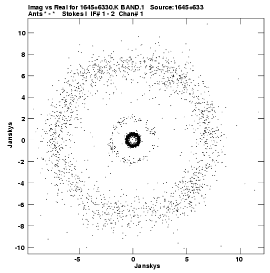 angle, the approximate noise level in prefixed units of Jansky, and a