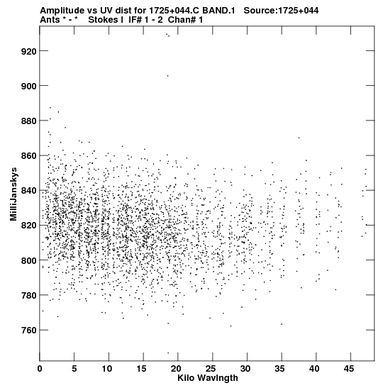 • Links is a collection of links that will show you the GIF uv-coverage and visibility plot for this data set in pop-up windows. See the README file on how to interpret these plots. They'll also get you to the project pipelining scripts and information log files as well as the full multi-source archive data on this project.