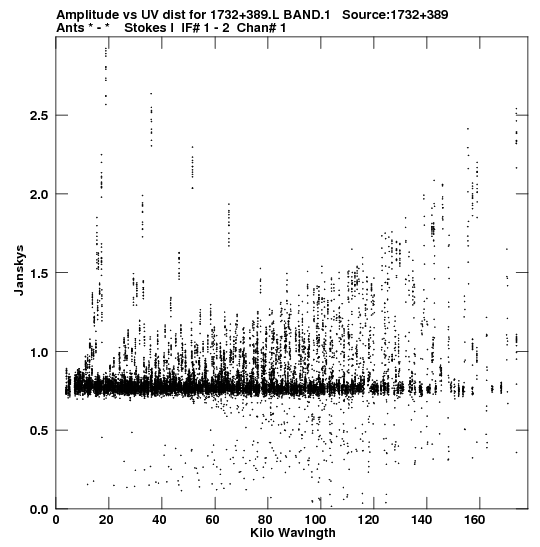 • Links is a collection of links that will show you the GIF uv-coverage and visibility plot for this data set in pop-up windows. See the README file on how to interpret these plots. They'll also get you to the project pipelining scripts and information log files as well as the full multi-source archive data on this project.