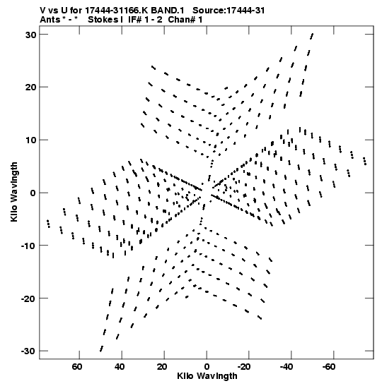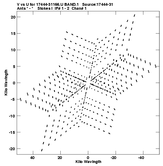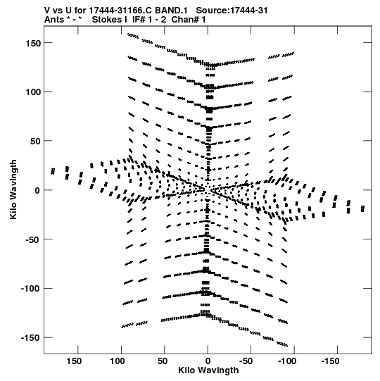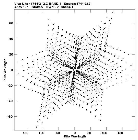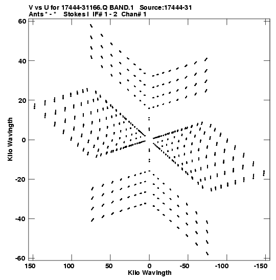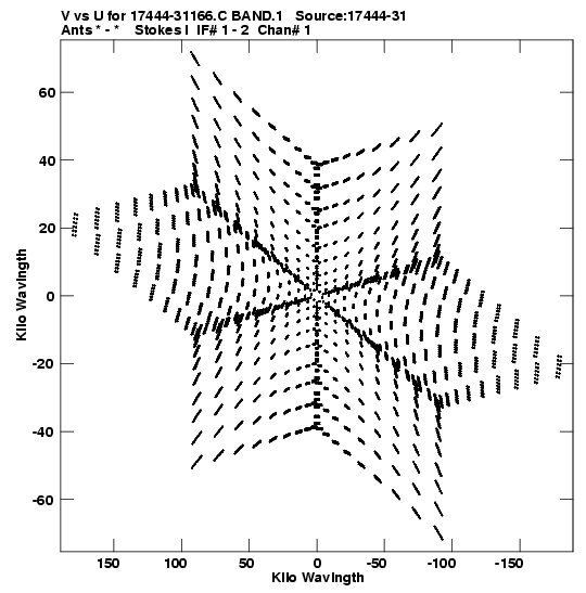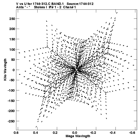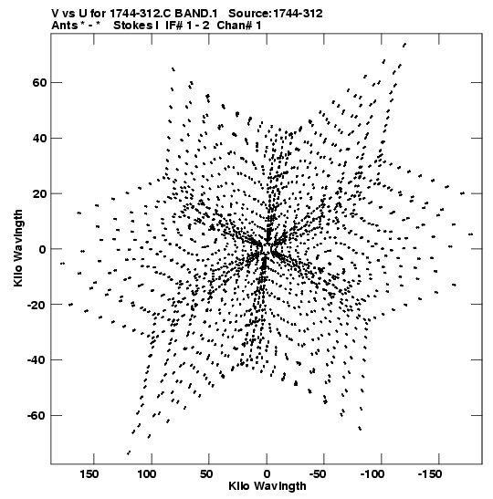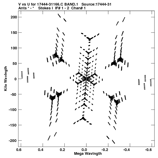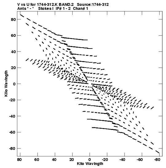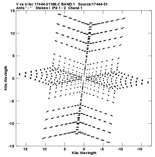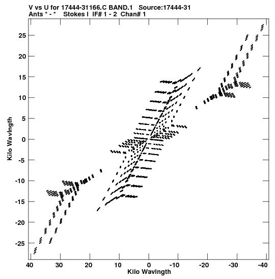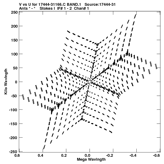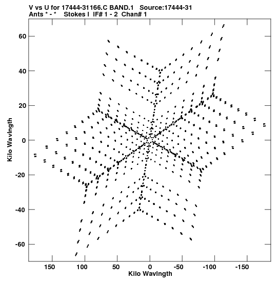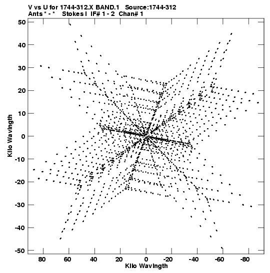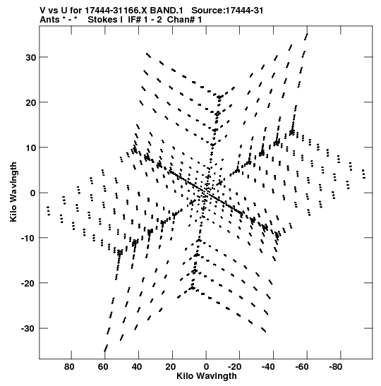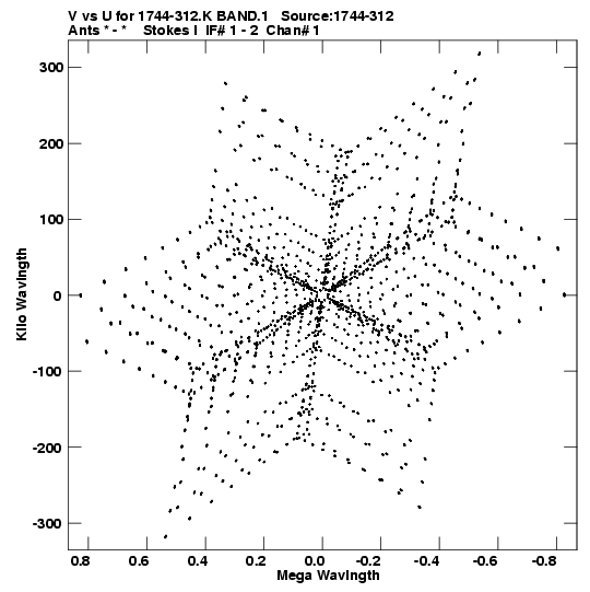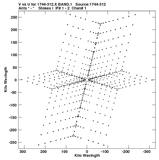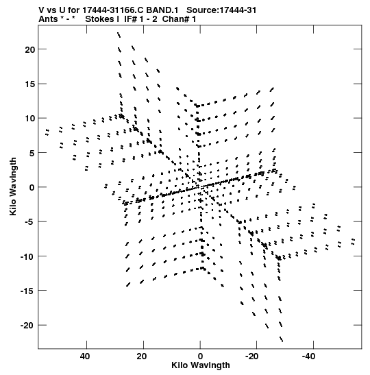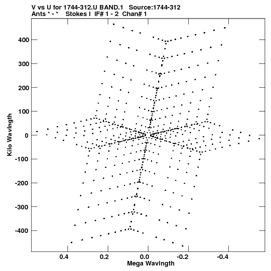 • Links is a collection of links that will show you the GIF uv-coverage and visibility plot for this data set in pop-up windows. See the README file on how to interpret these plots. They'll also get you to the project pipelining scripts and information log files as well as the full multi-source archive data on this project.