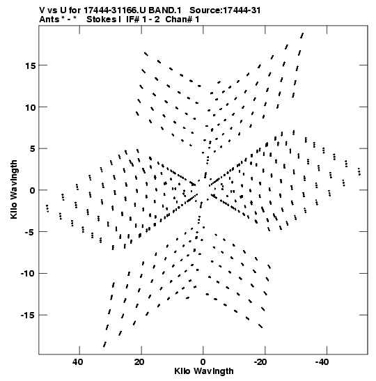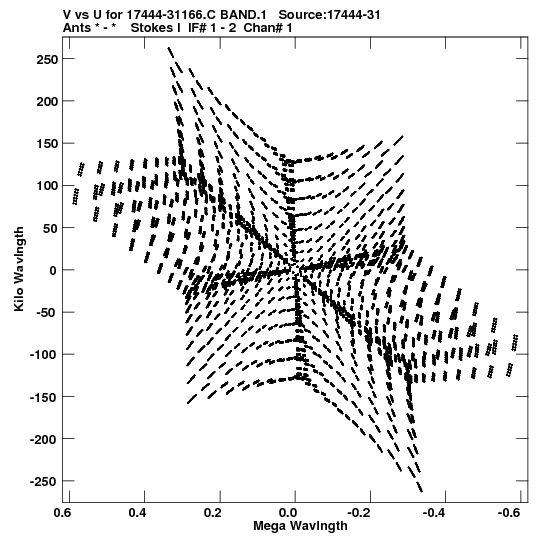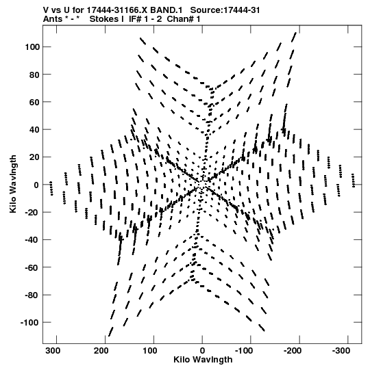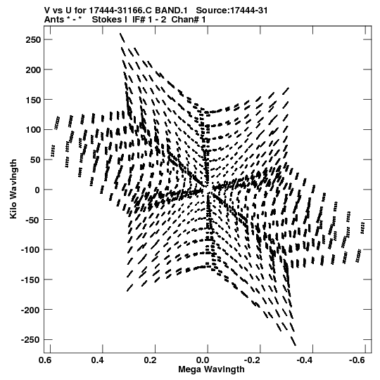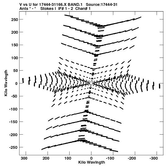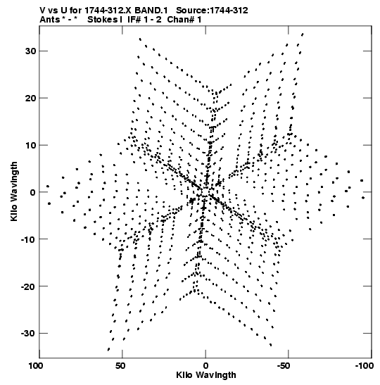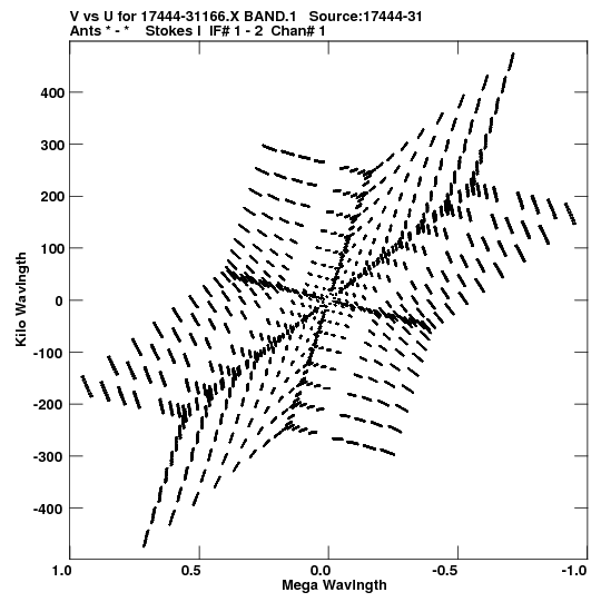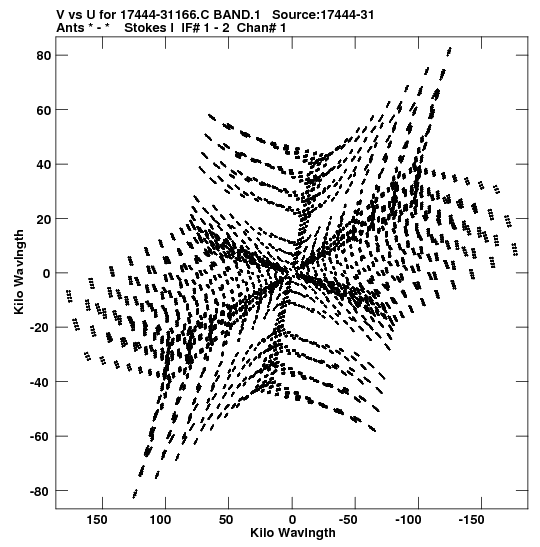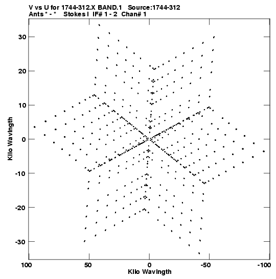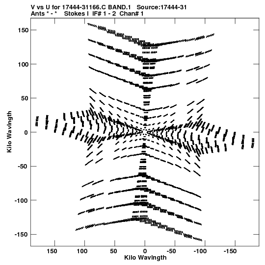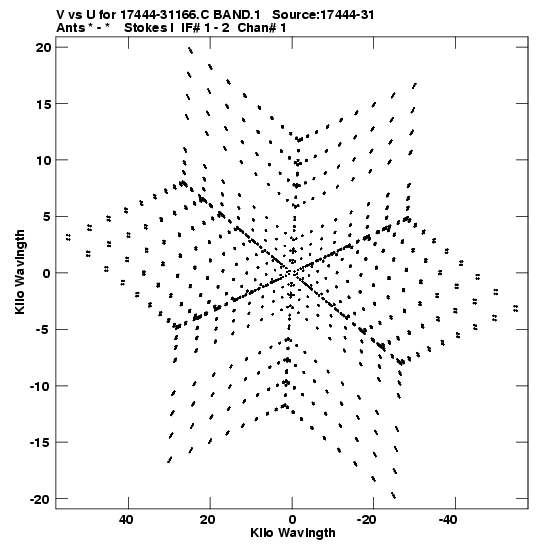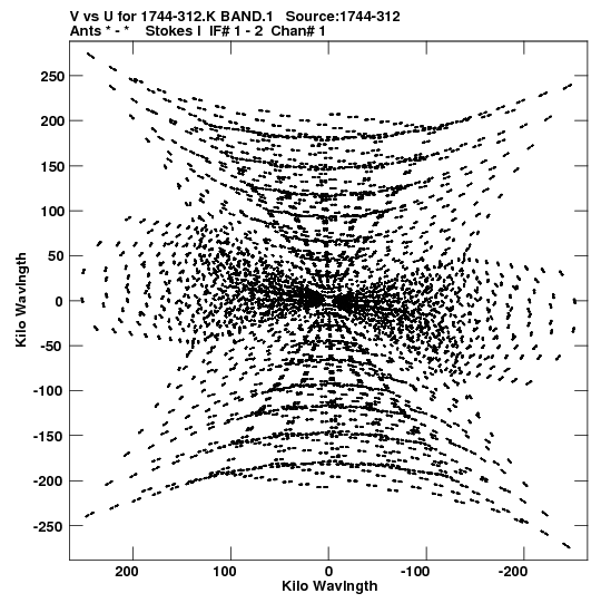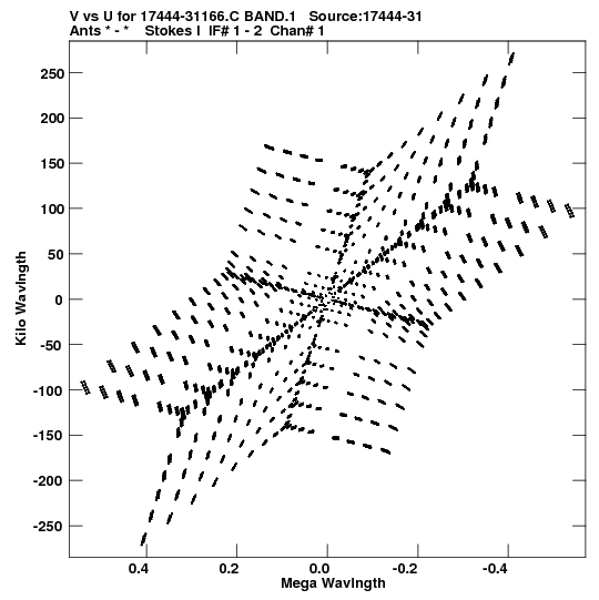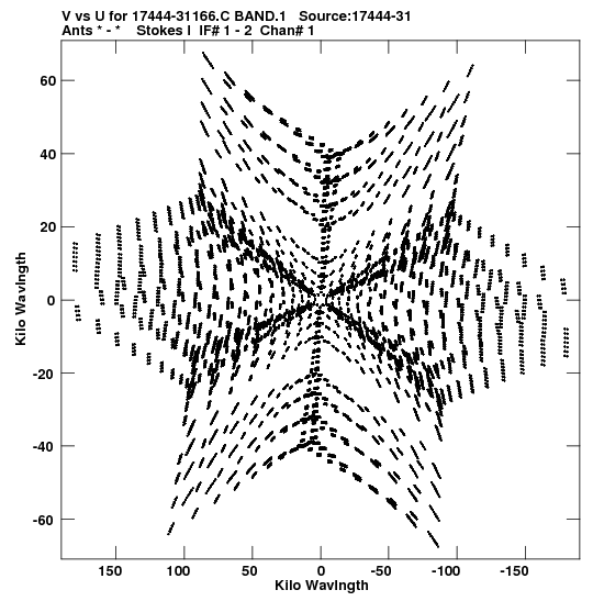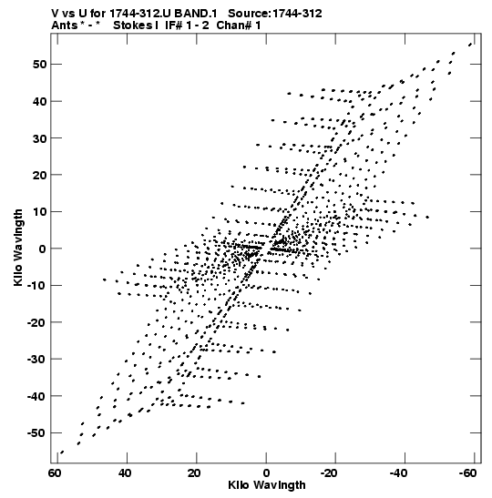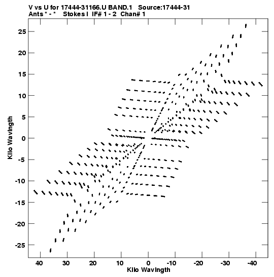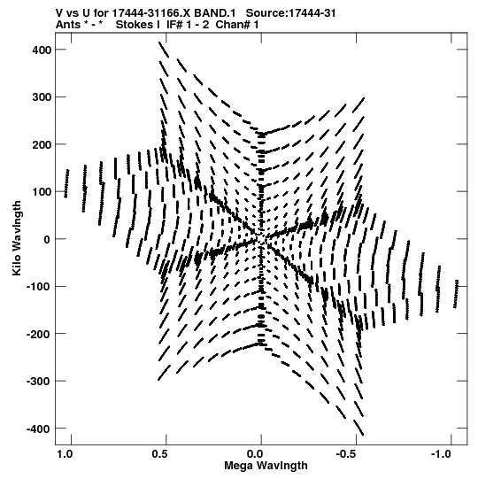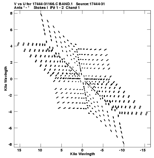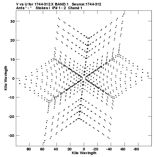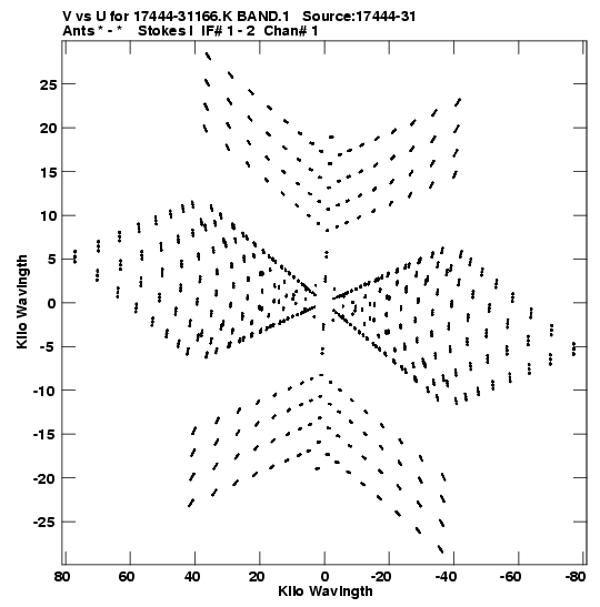 • Links is a collection of links that will show you the GIF uv-coverage and visibility plot for this data set in pop-up windows. See the README file on how to interpret these plots. They'll also get you to the project pipelining scripts and information log files as well as the full multi-source archive data on this project.