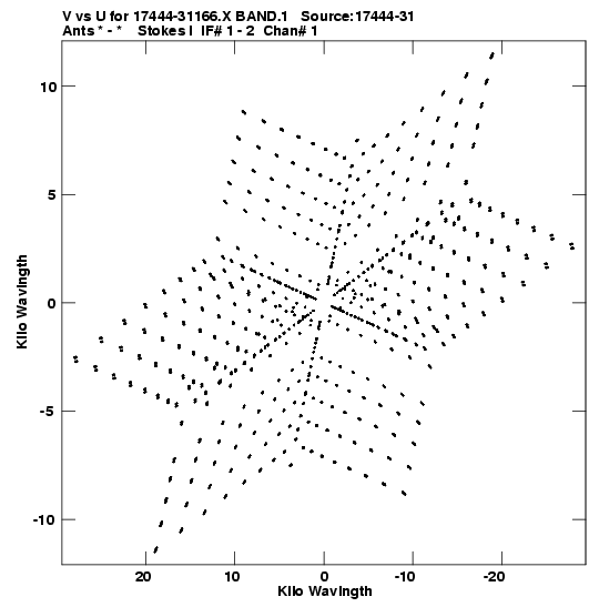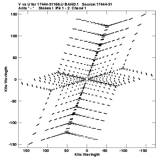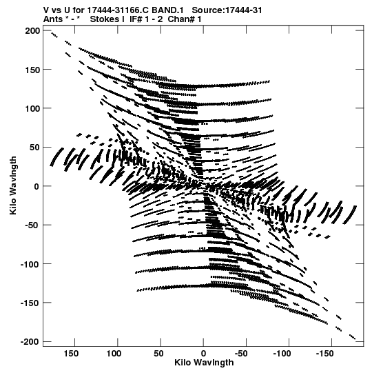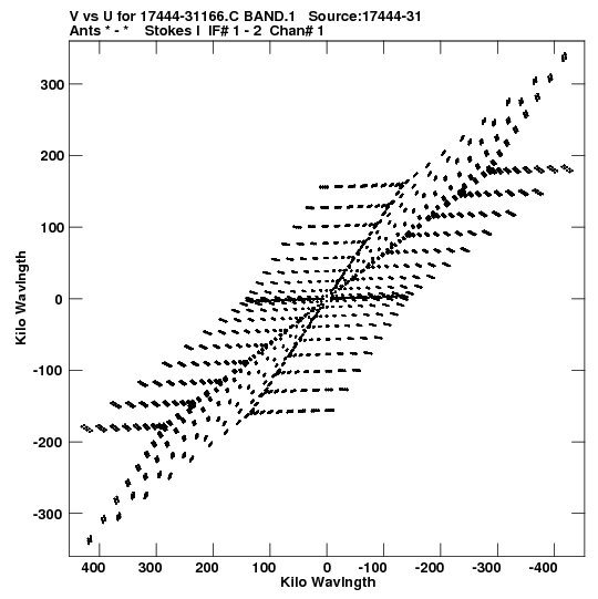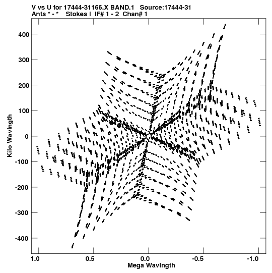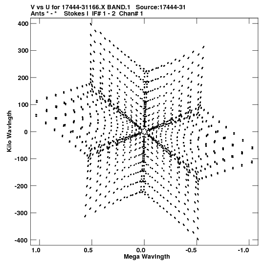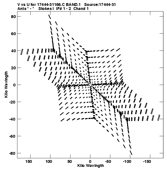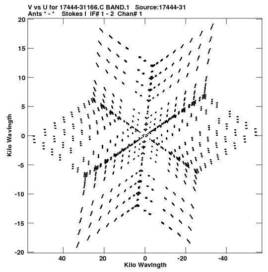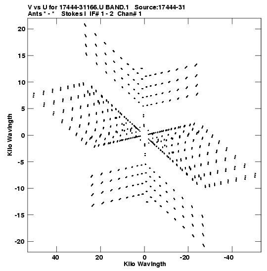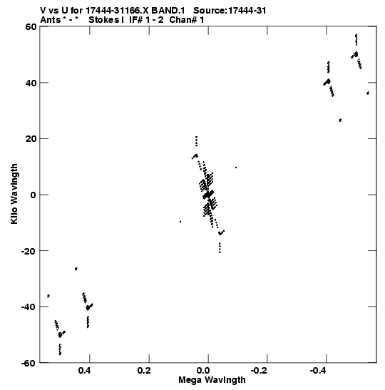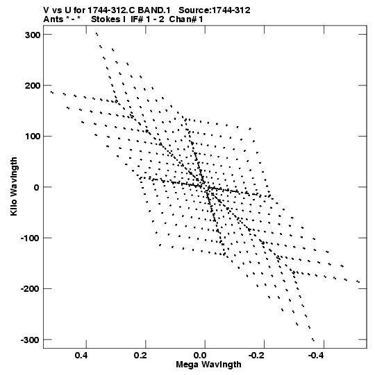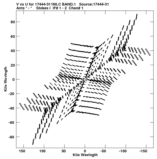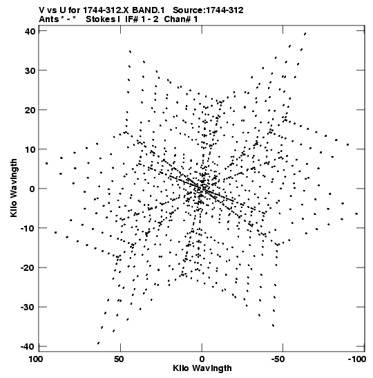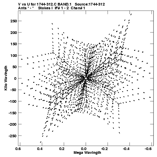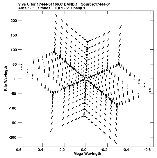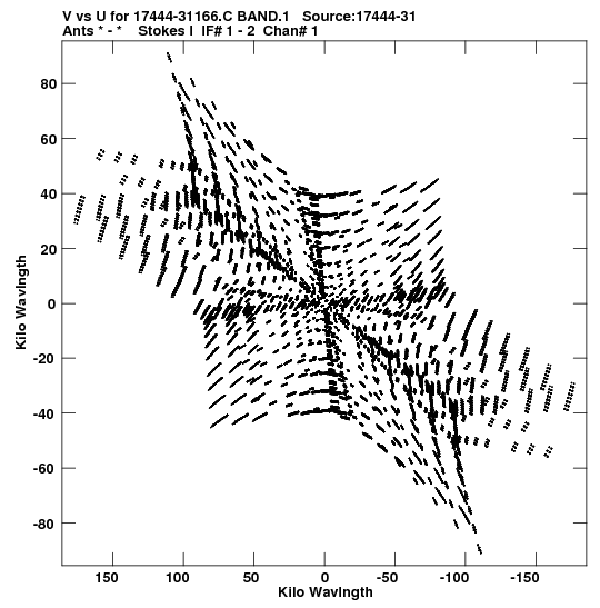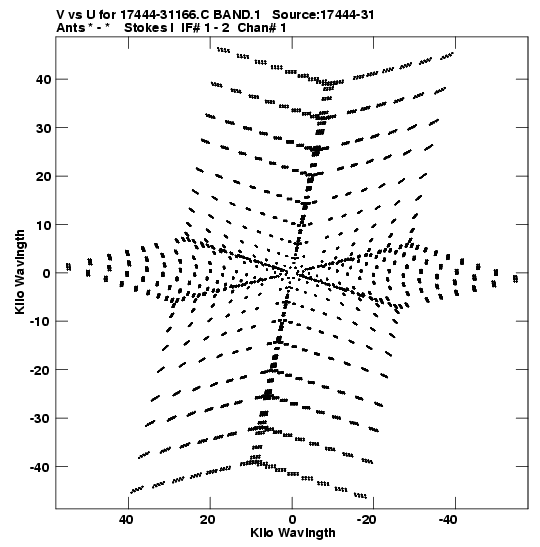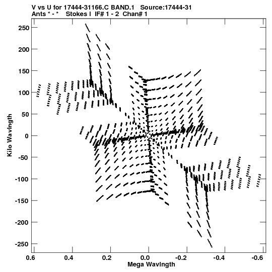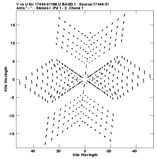 • Links is a collection of links that will show you the GIF uv-coverage and visibility plot for this data set in pop-up windows. See the README file on how to interpret these plots. They'll also get you to the project pipelining scripts and information log files as well as the full multi-source archive data on this project.
