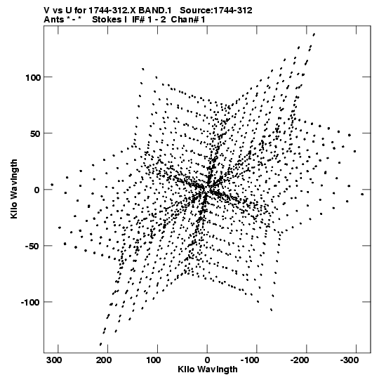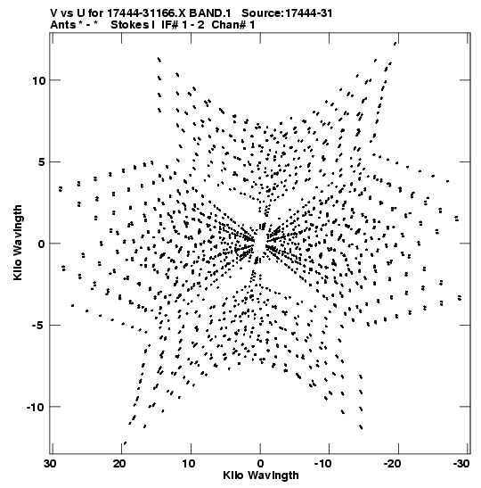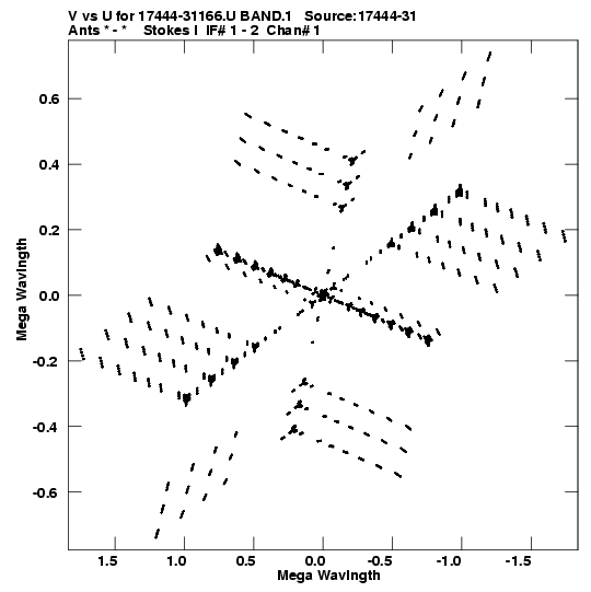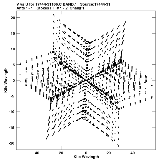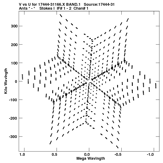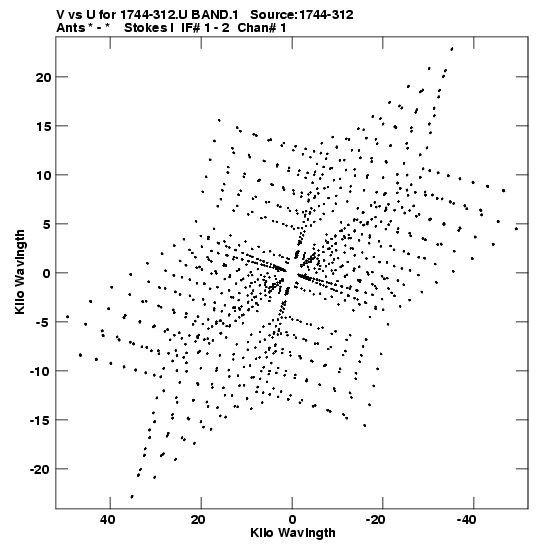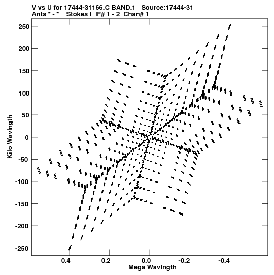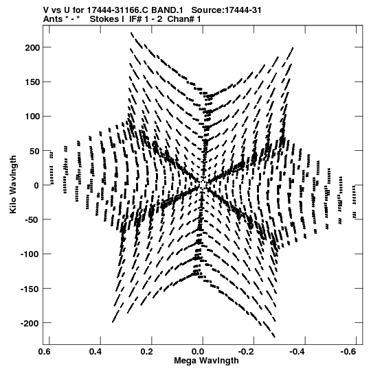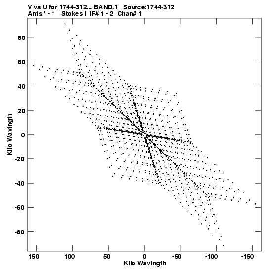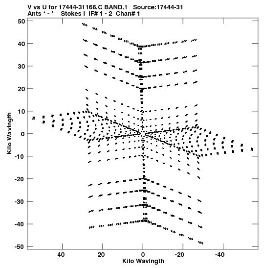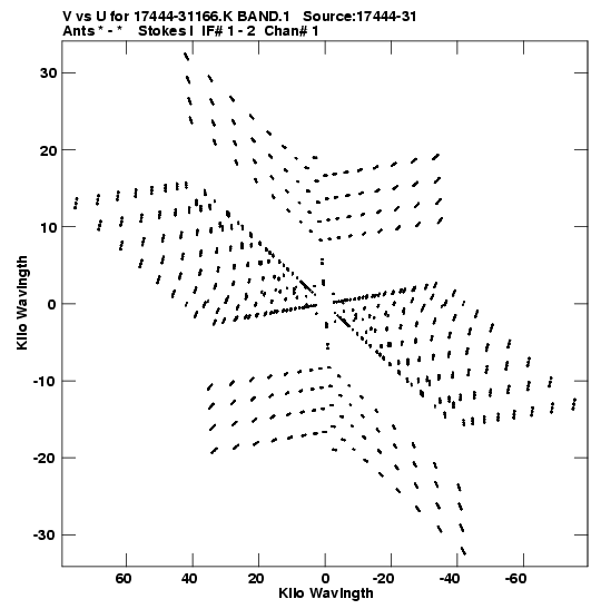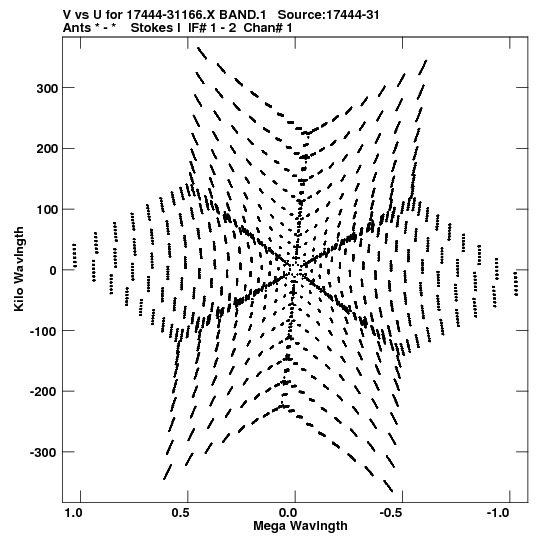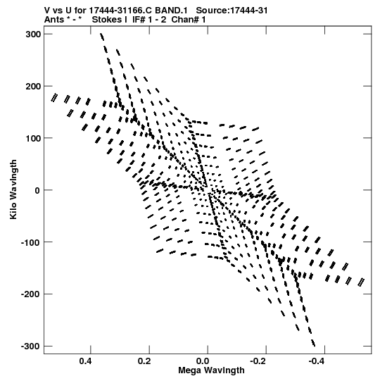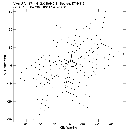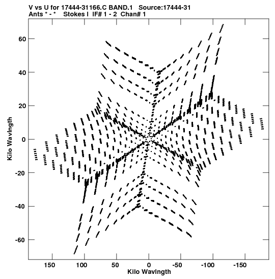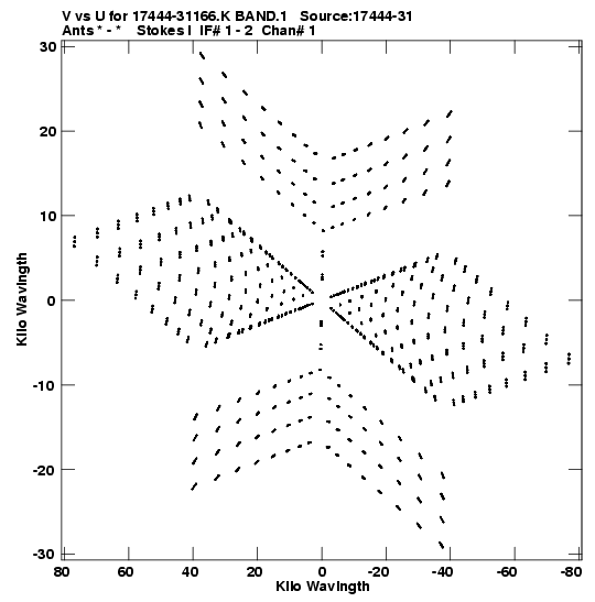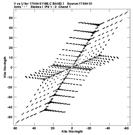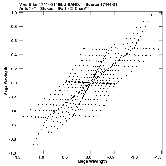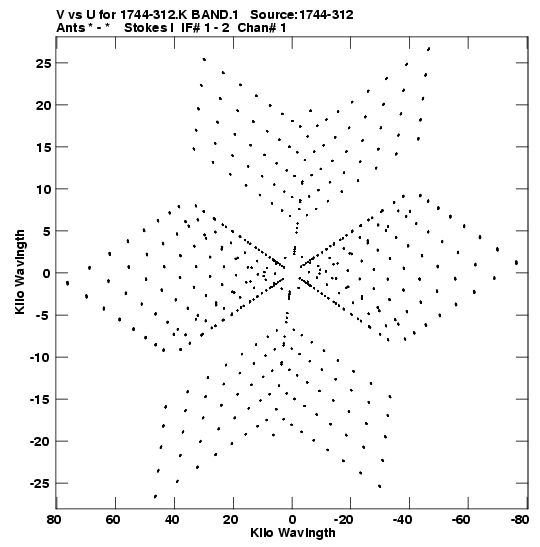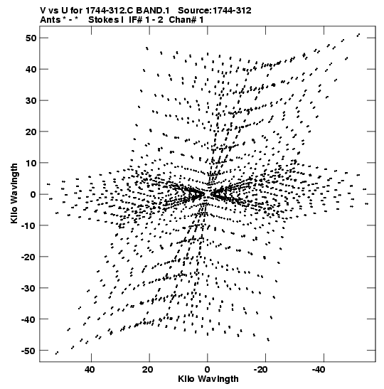 • Links is a collection of links that will show you the GIF uv-coverage and visibility plot for this data set in pop-up windows. See the README file on how to interpret these plots. They'll also get you to the project pipelining scripts and information log files as well as the full multi-source archive data on this project.