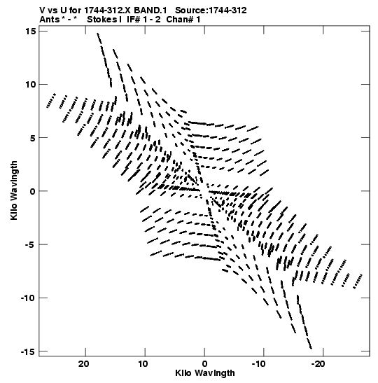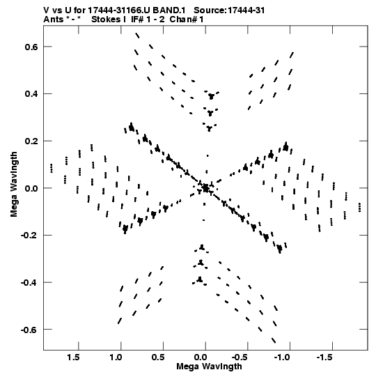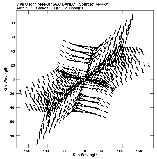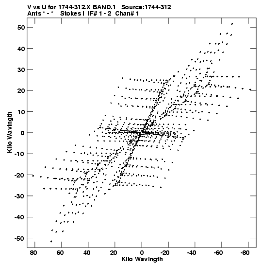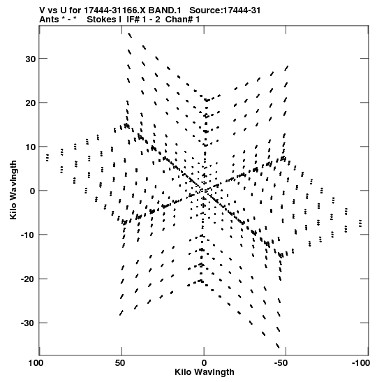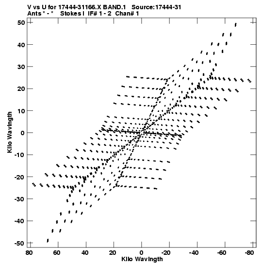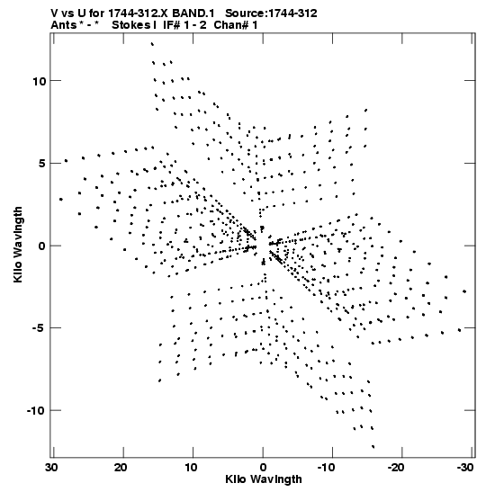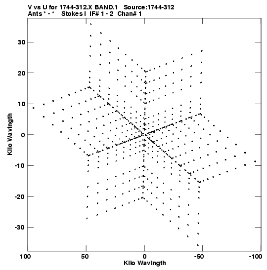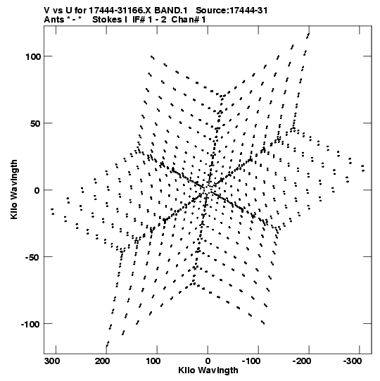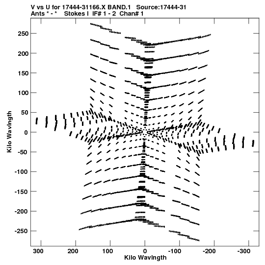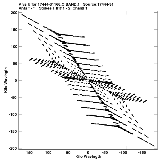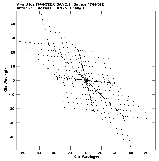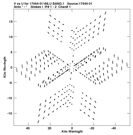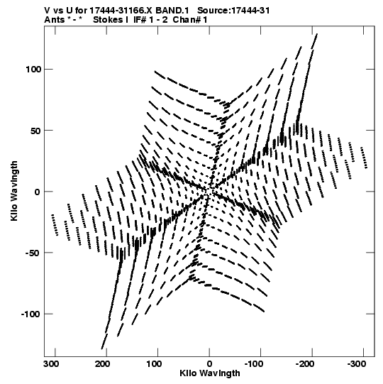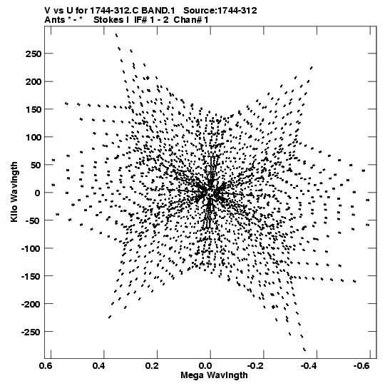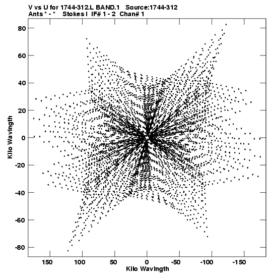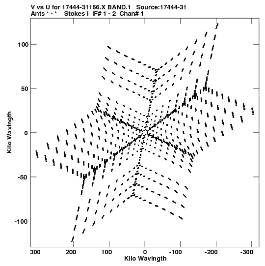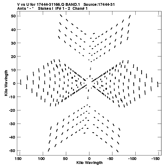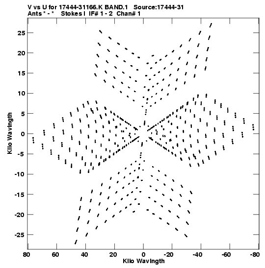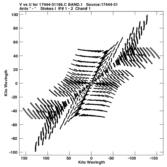 • Links is a collection of links that will show you the GIF uv-coverage and visibility plot for this data set in pop-up windows. See the README file on how to interpret these plots. They'll also get you to the project pipelining scripts and information log files as well as the full multi-source archive data on this project.