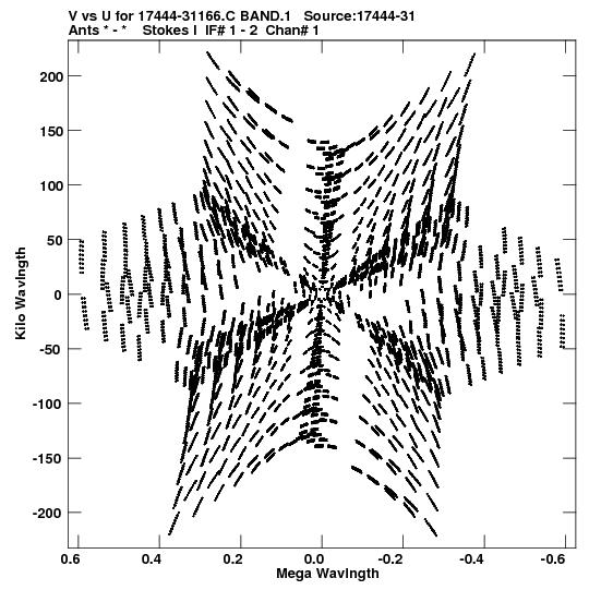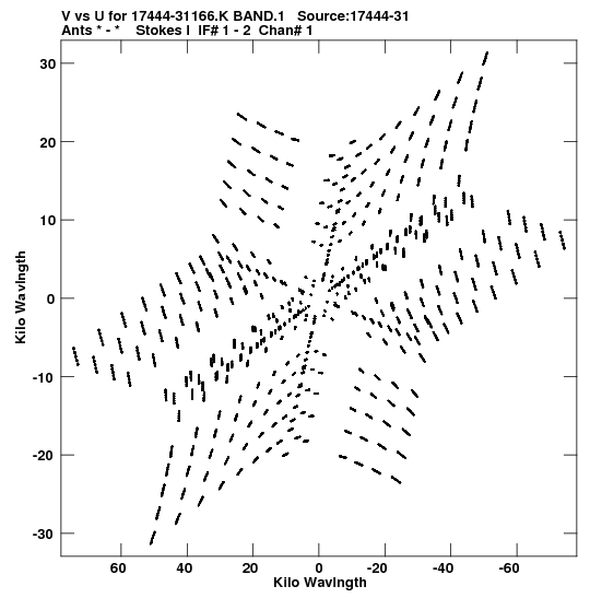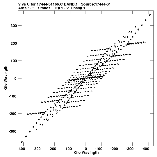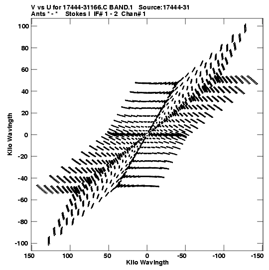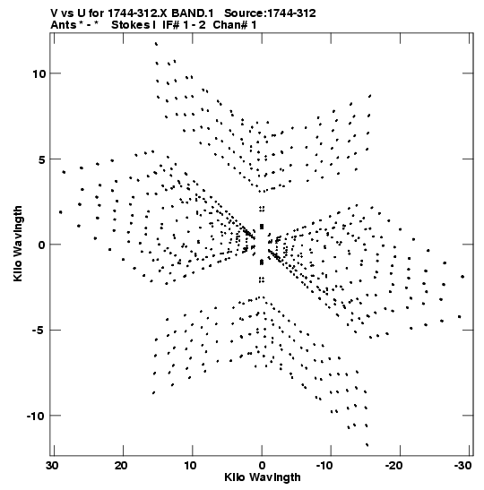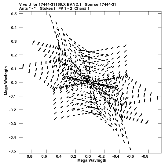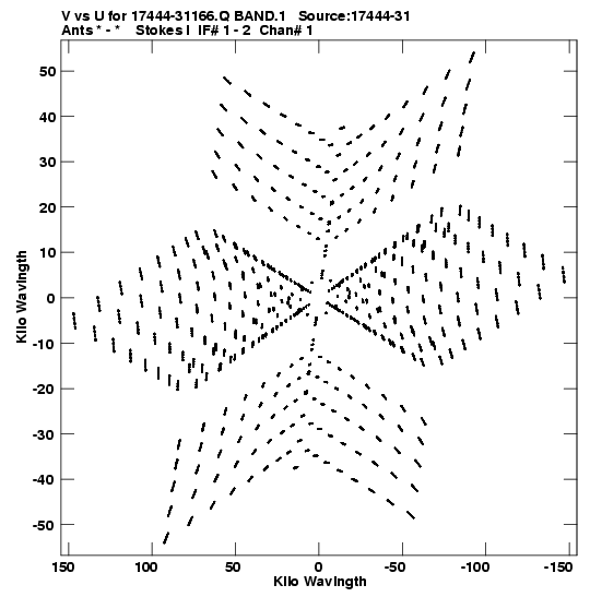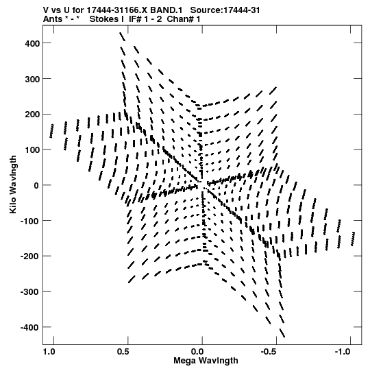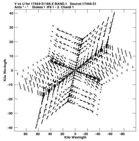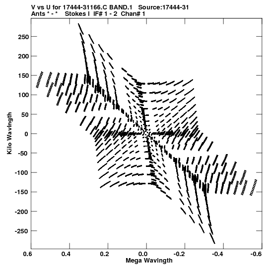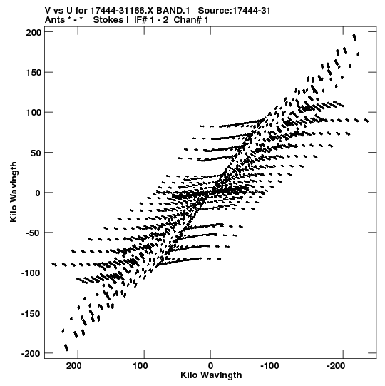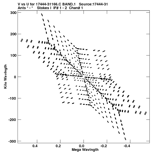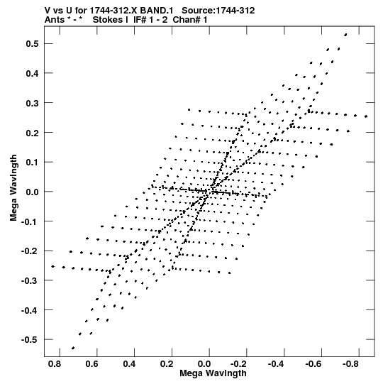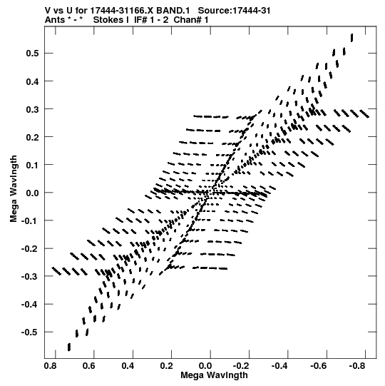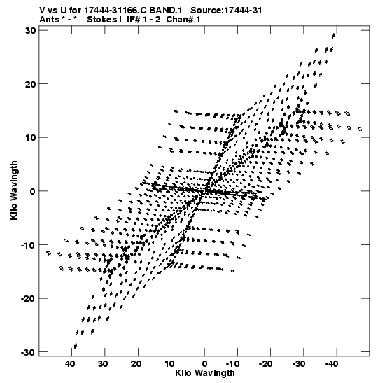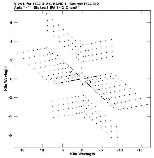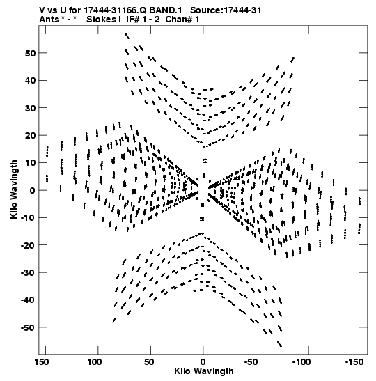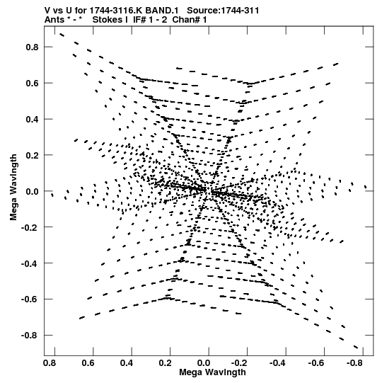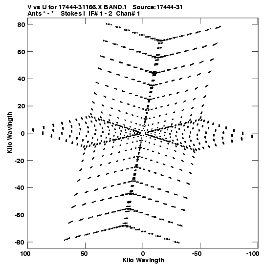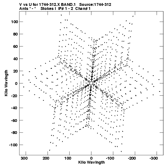 • Links is a collection of links that will show you the GIF uv-coverage and visibility plot for this data set in pop-up windows. See the README file on how to interpret these plots. They'll also get you to the project pipelining scripts and information log files as well as the full multi-source archive data on this project.