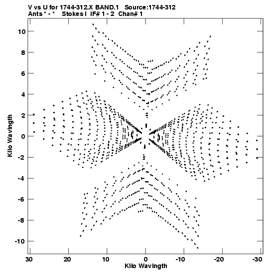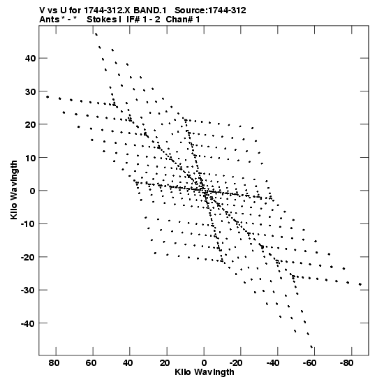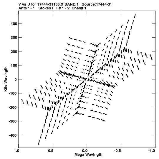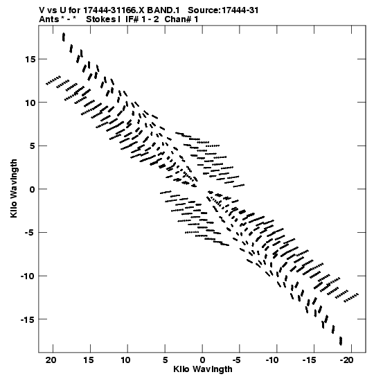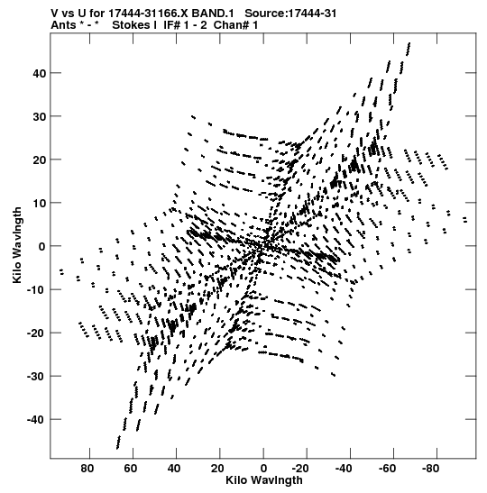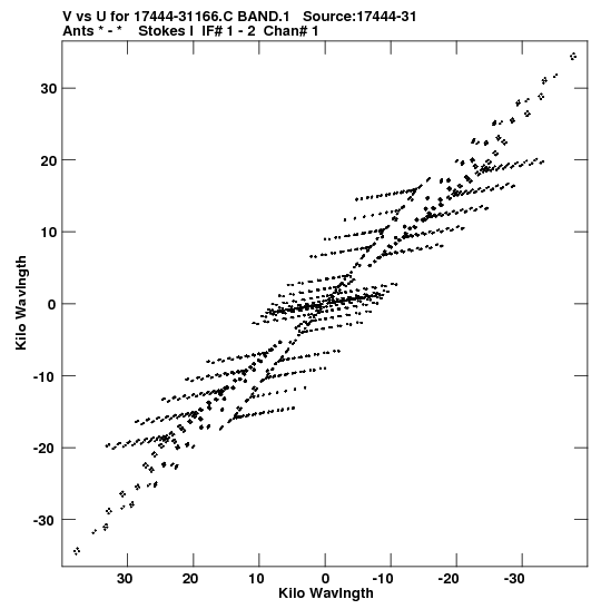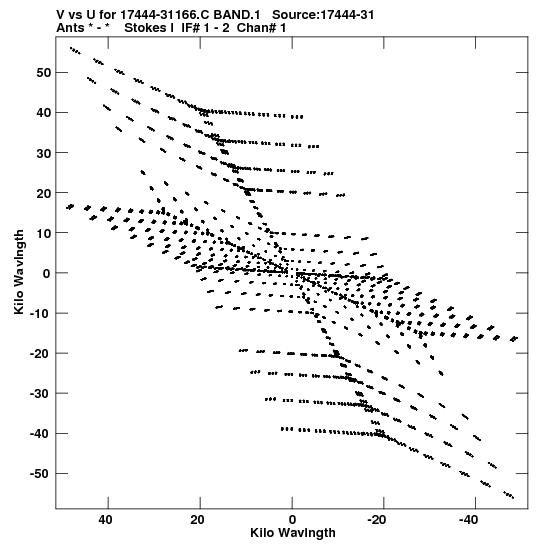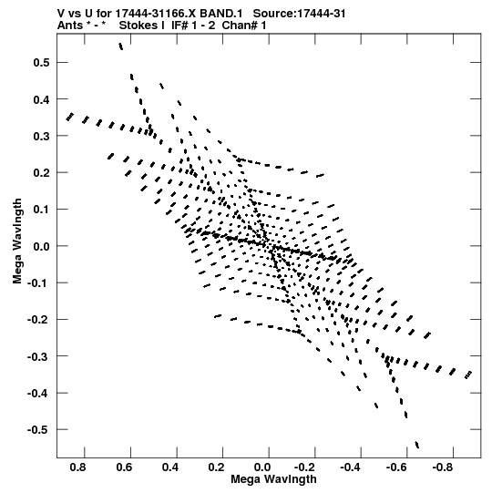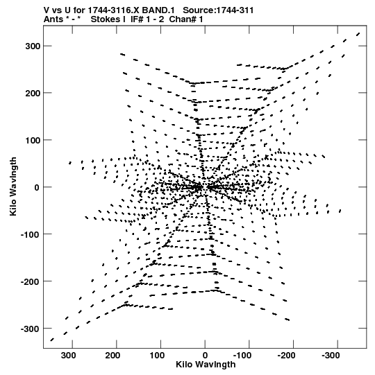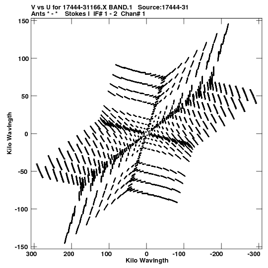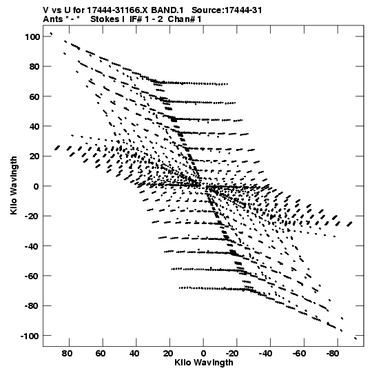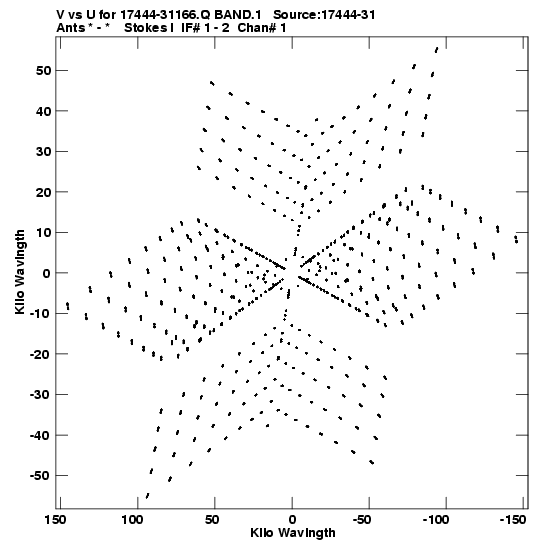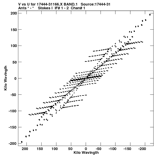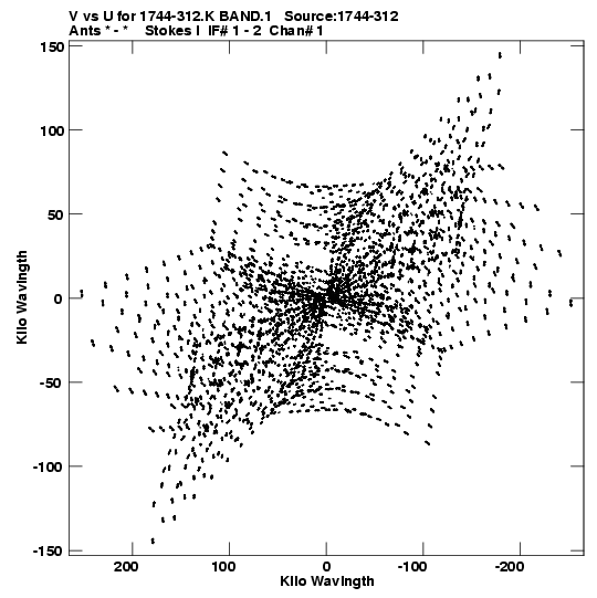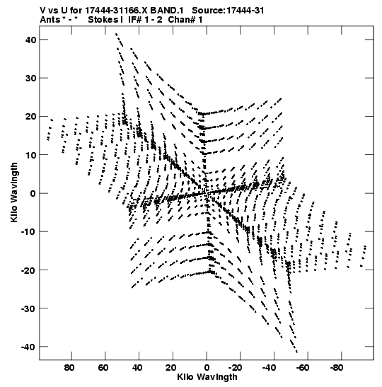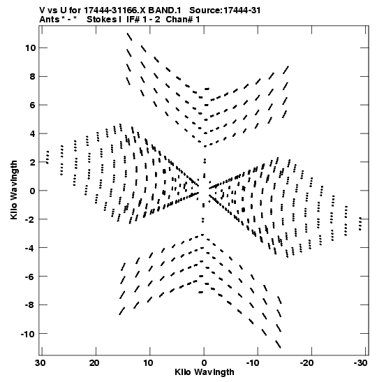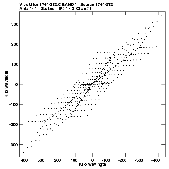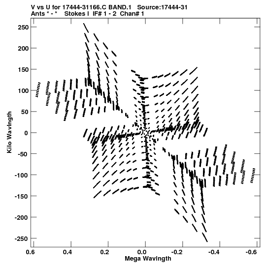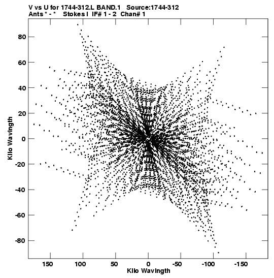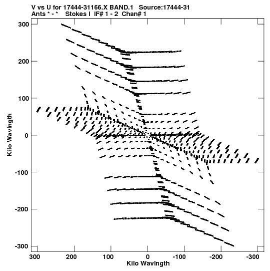 • Links is a collection of links that will show you the GIF uv-coverage and visibility plot for this data set in pop-up windows. See the README file on how to interpret these plots. They'll also get you to the project pipelining scripts and information log files as well as the full multi-source archive data on this project.