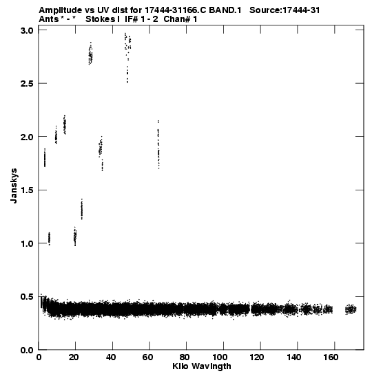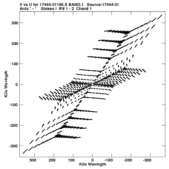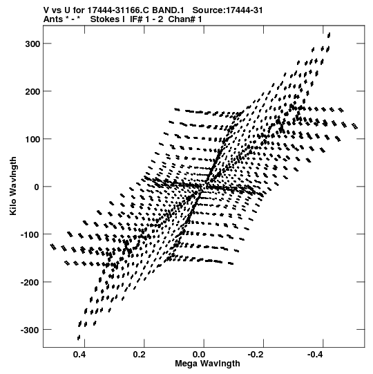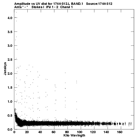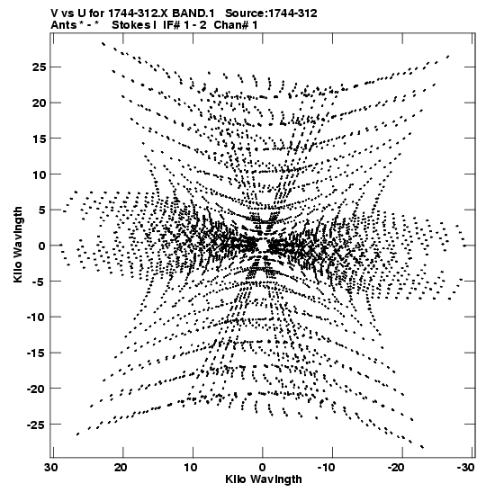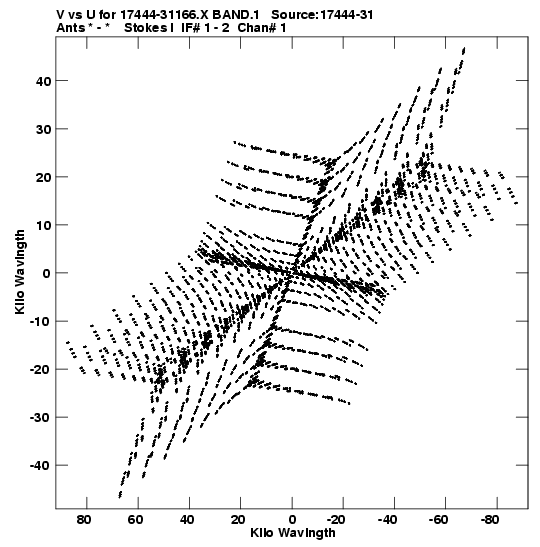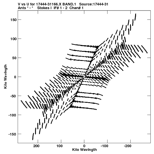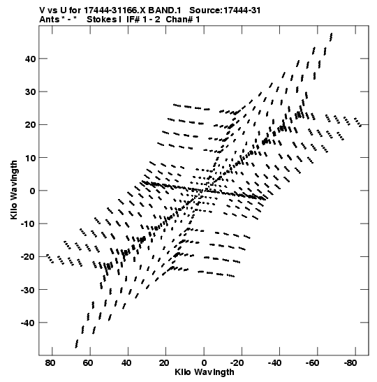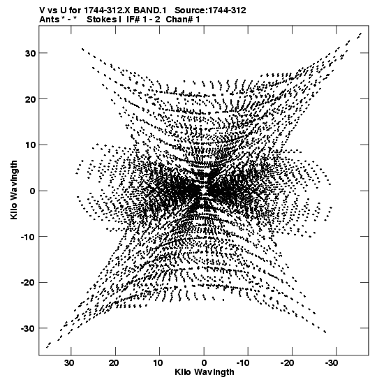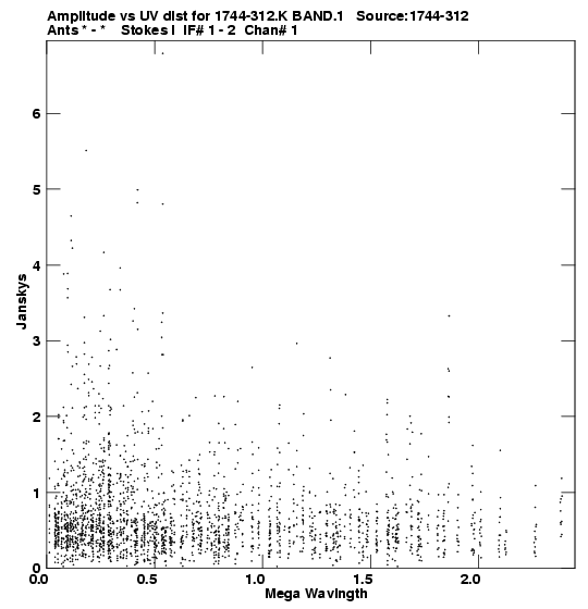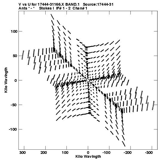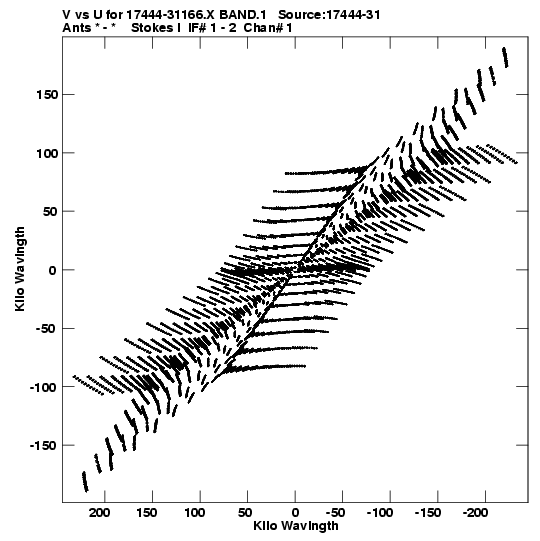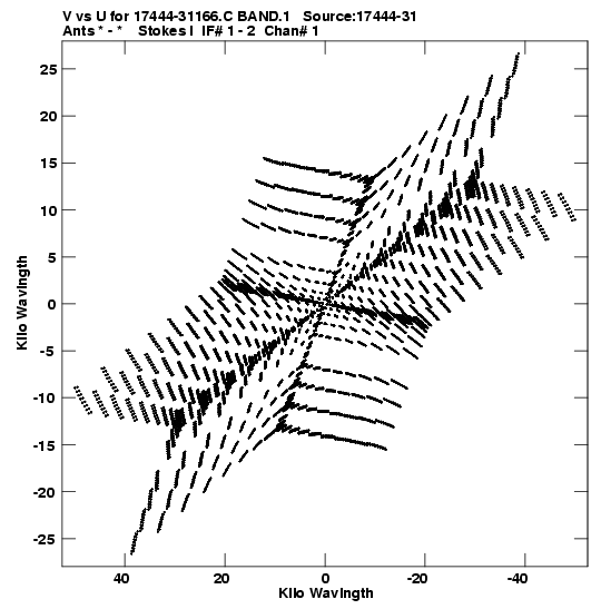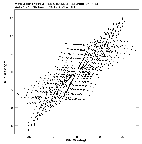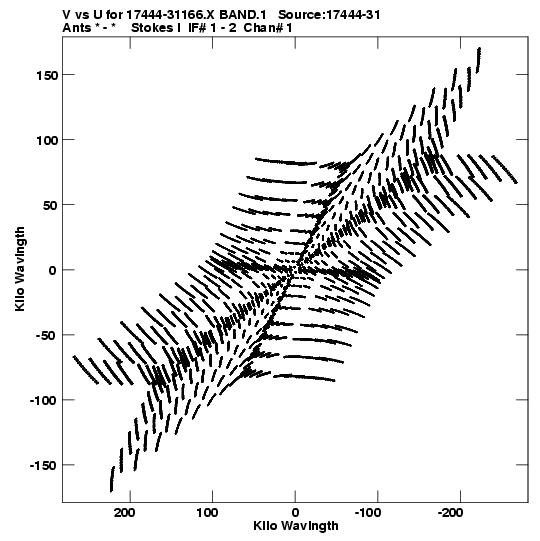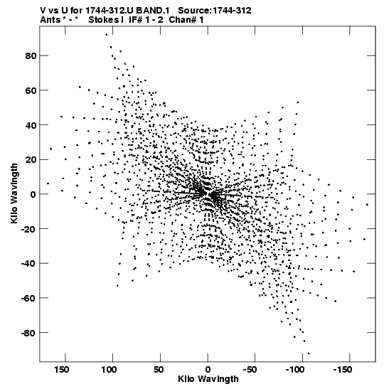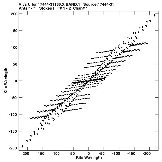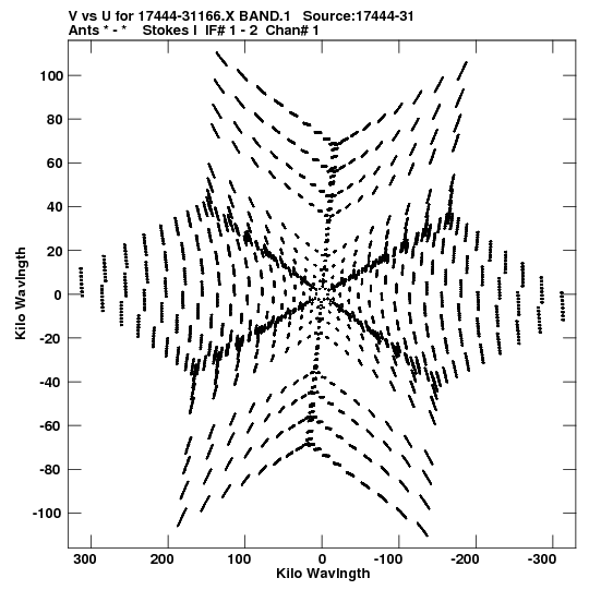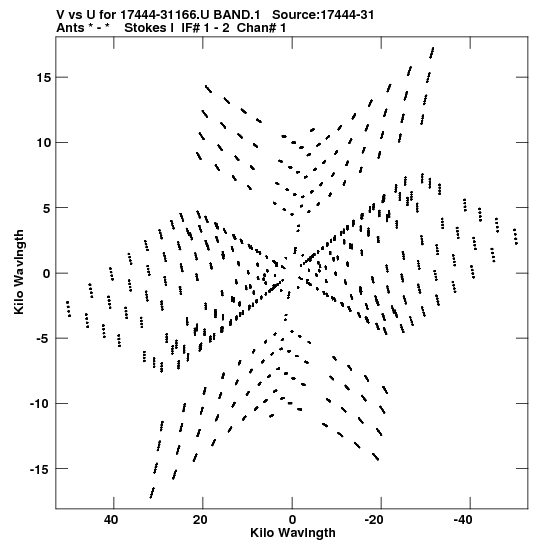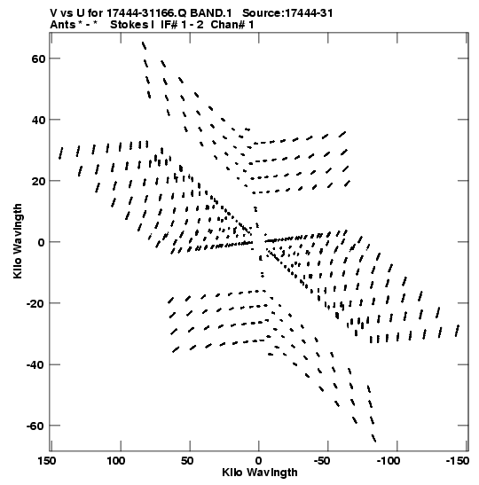 • Links is a collection of links that will show you the GIF uv-coverage and visibility plot for this data set in pop-up windows. See the README file on how to interpret these plots. They'll also get you to the project pipelining scripts and information log files as well as the full multi-source archive data on this project.
