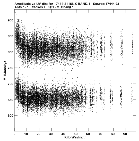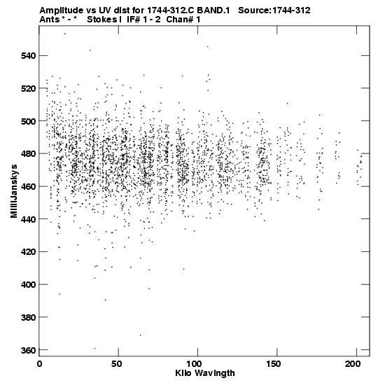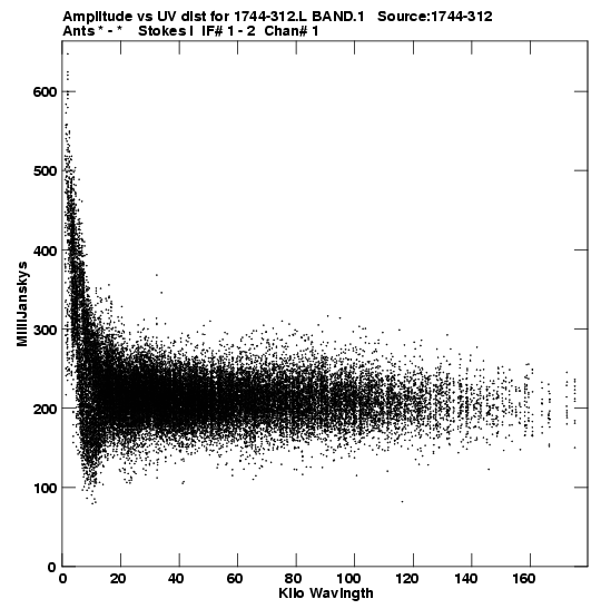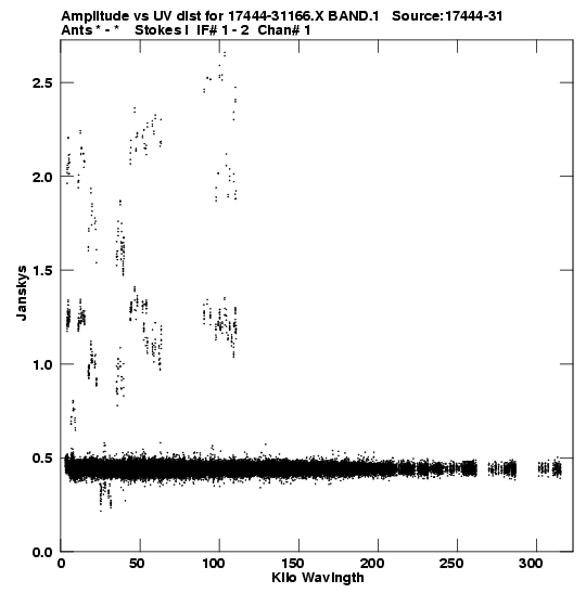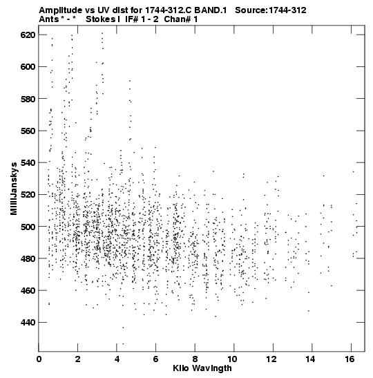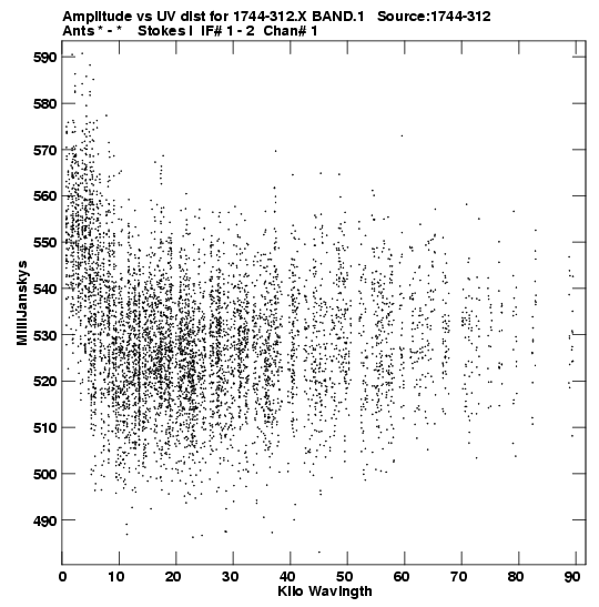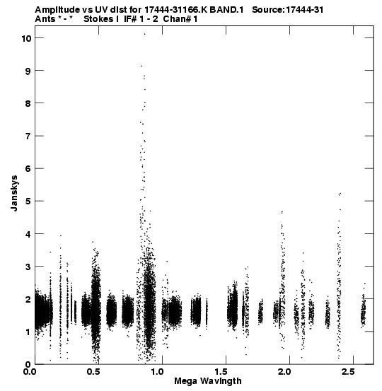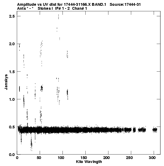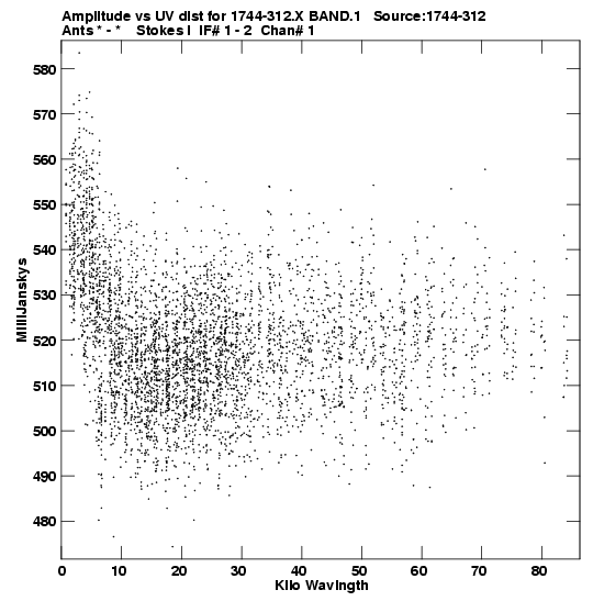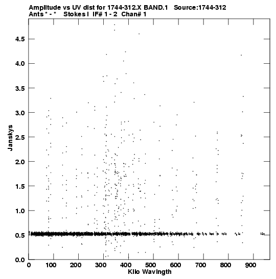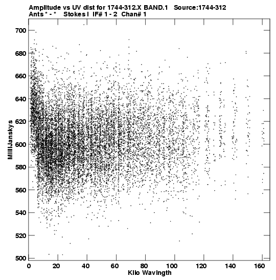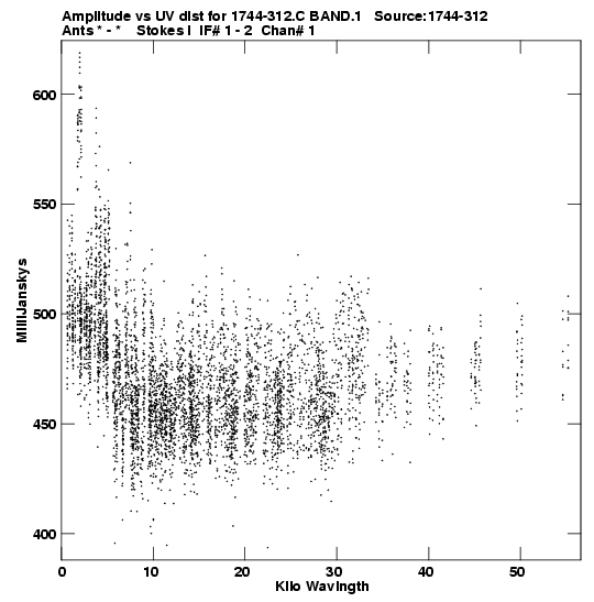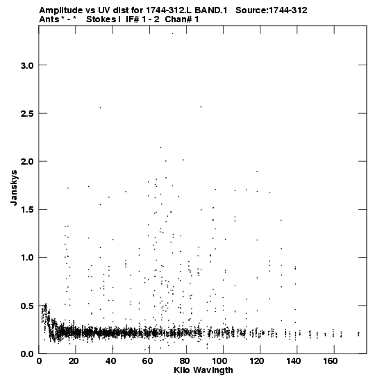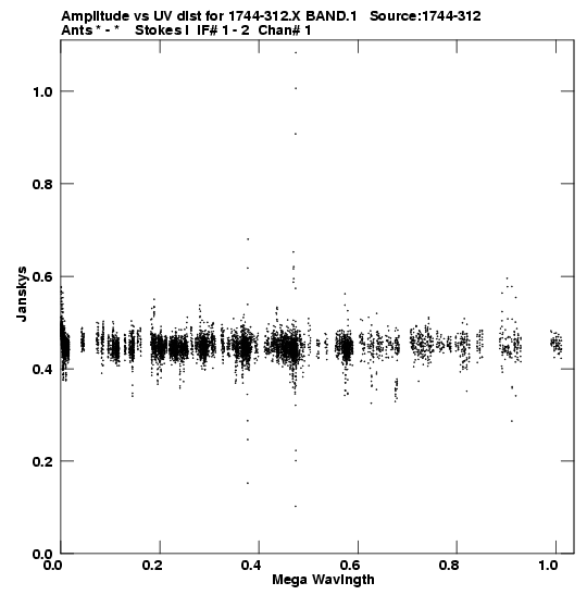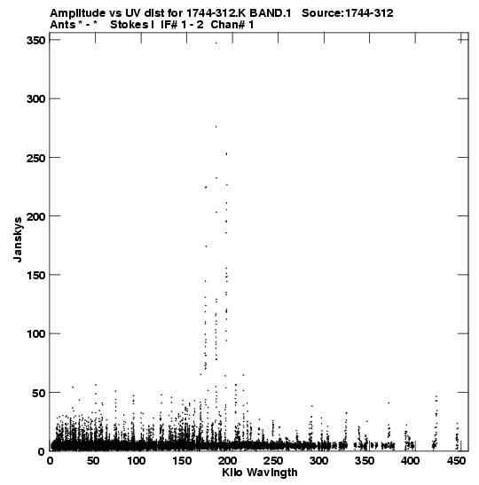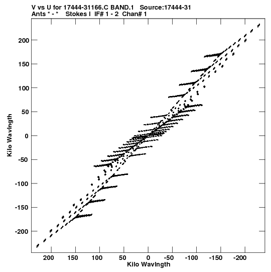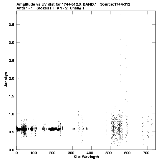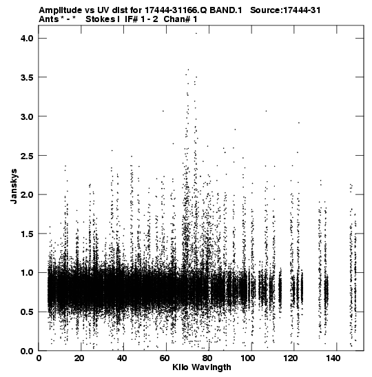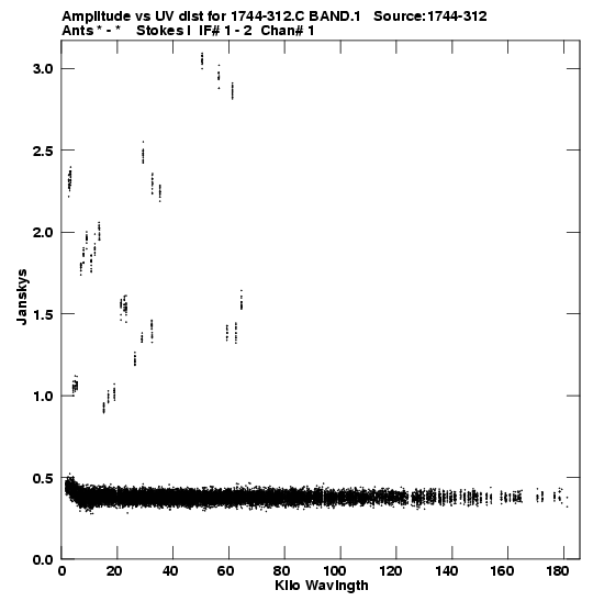 • Links is a collection of links that will show you the GIF uv-coverage and visibility plot for this data set in pop-up windows. See the README file on how to interpret these plots. They'll also get you to the project pipelining scripts and information log files as well as the full multi-source archive data on this project.