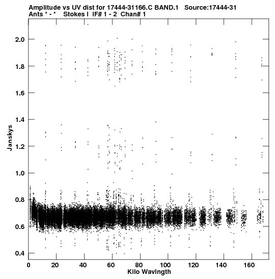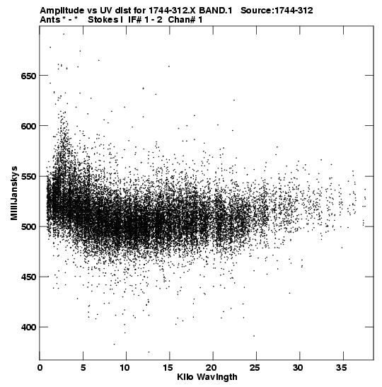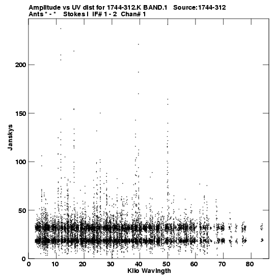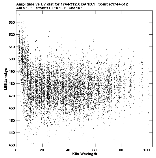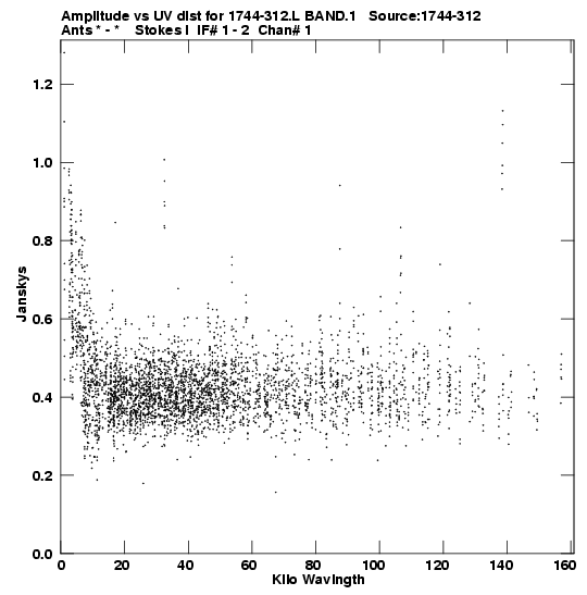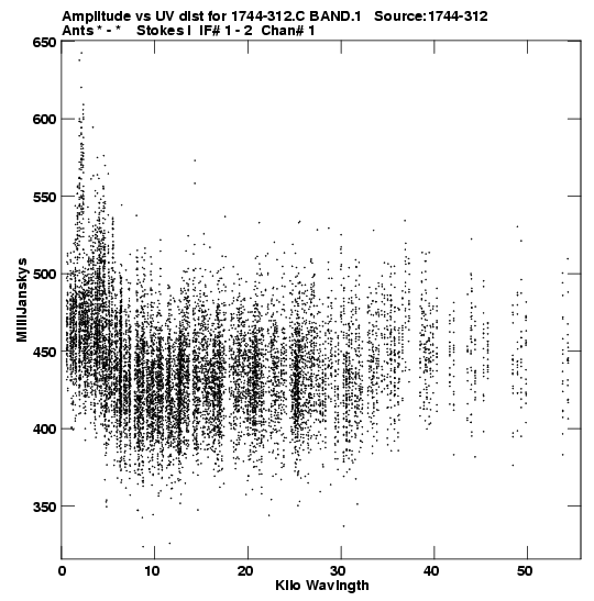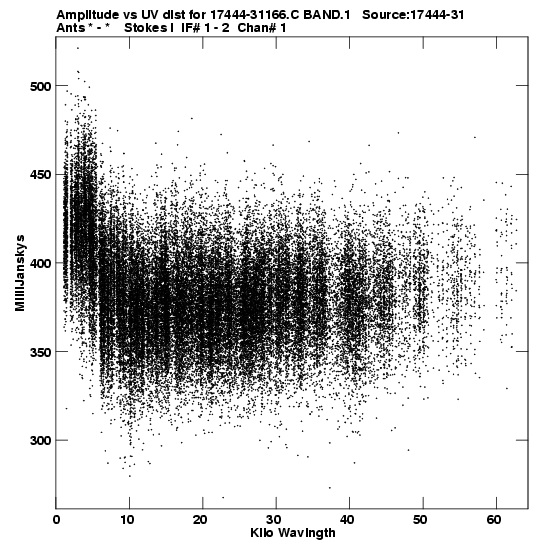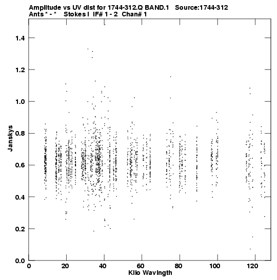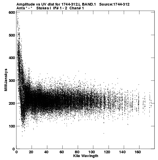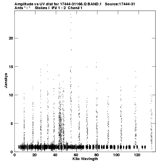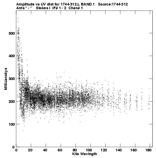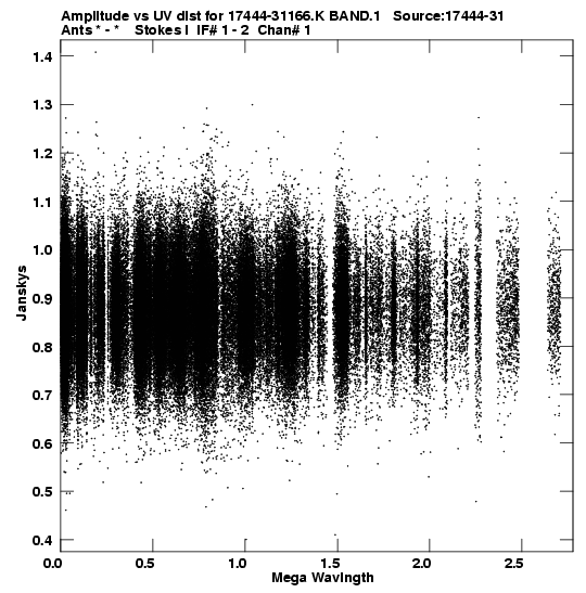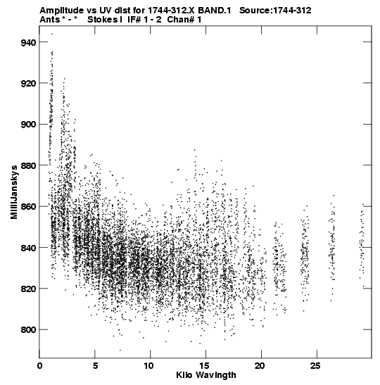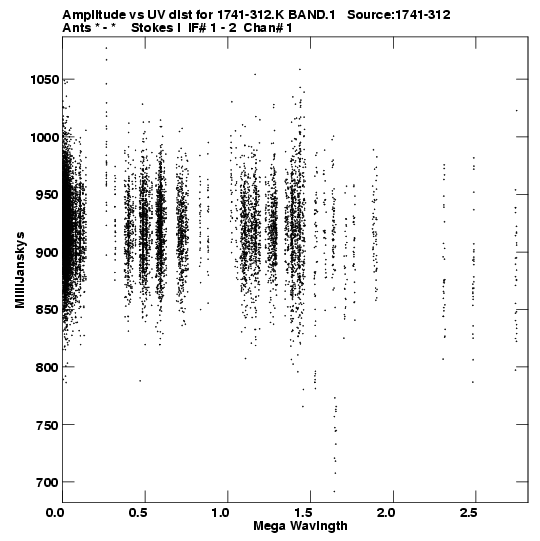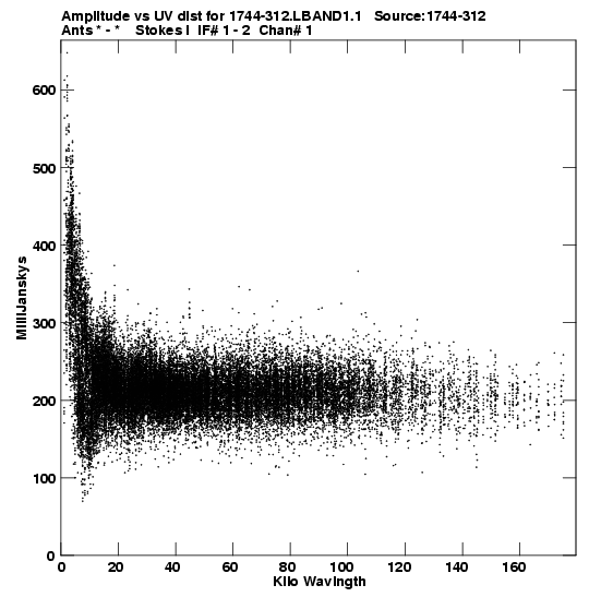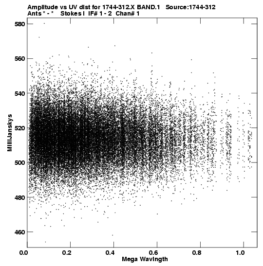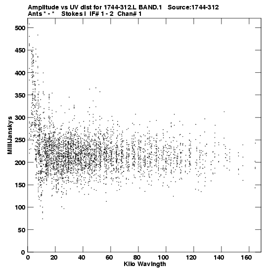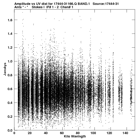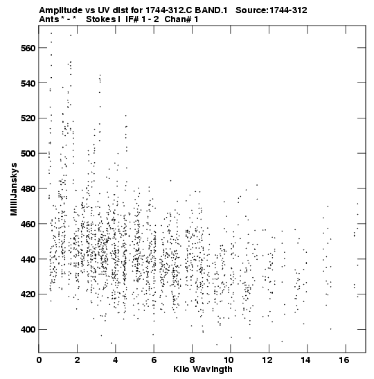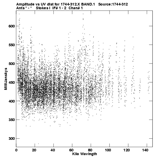 • Links is a collection of links that will show you the GIF uv-coverage and visibility plot for this data set in pop-up windows. See the README file on how to interpret these plots. They'll also get you to the project pipelining scripts and information log files as well as the full multi-source archive data on this project.