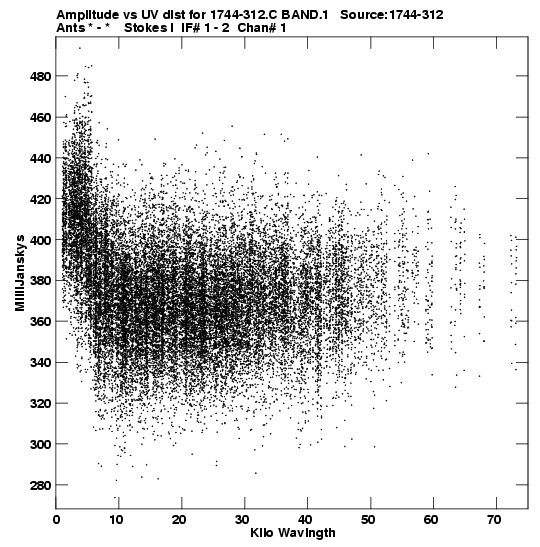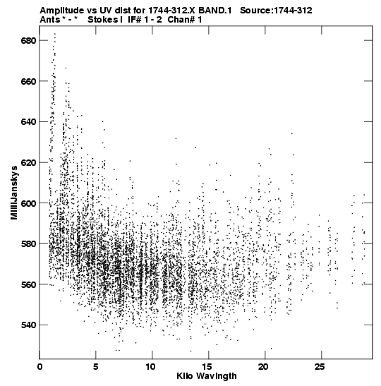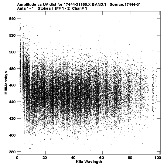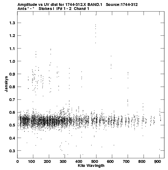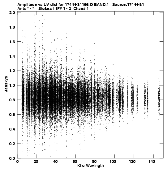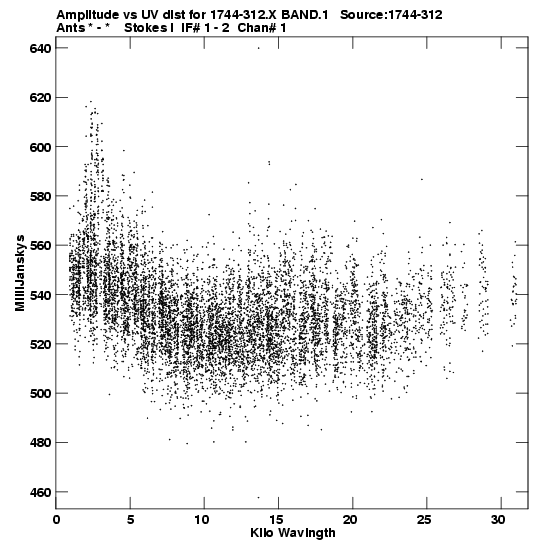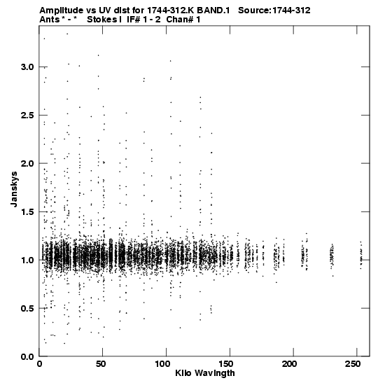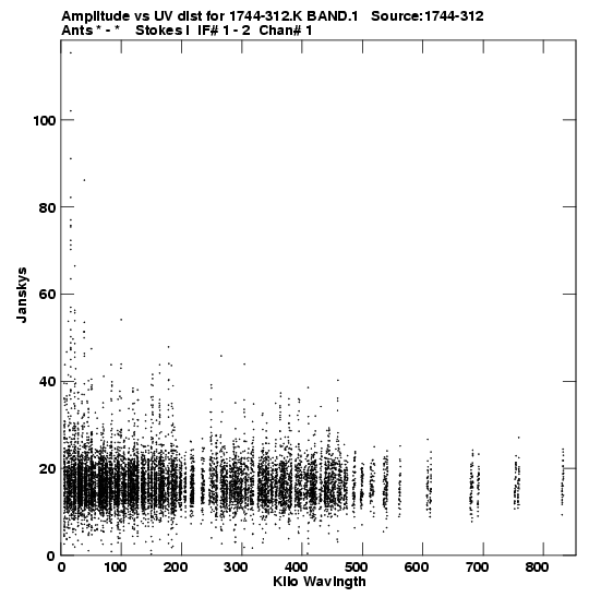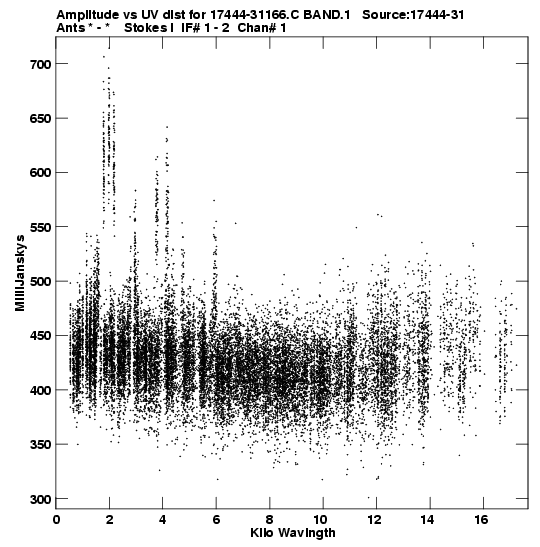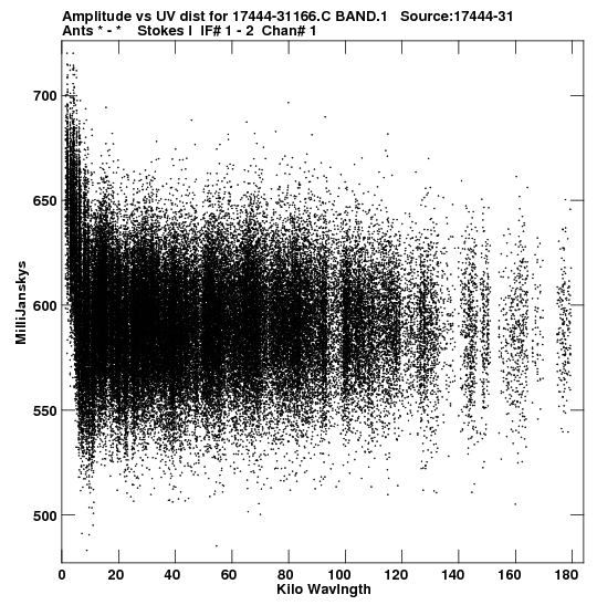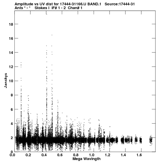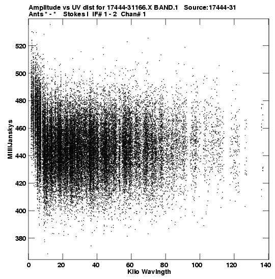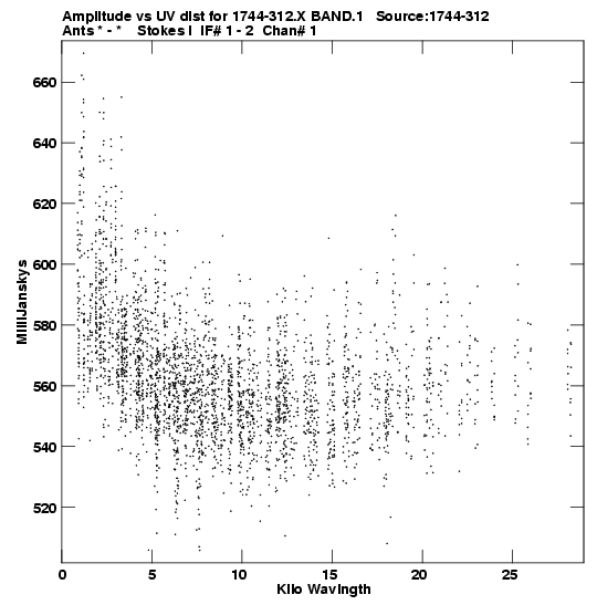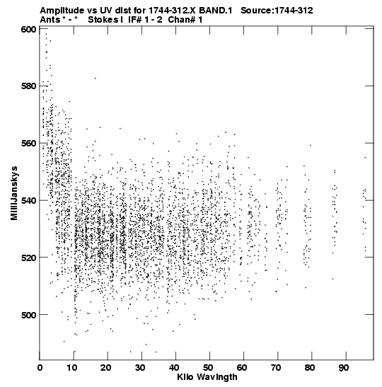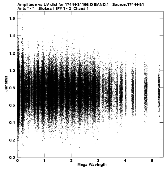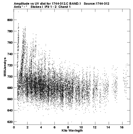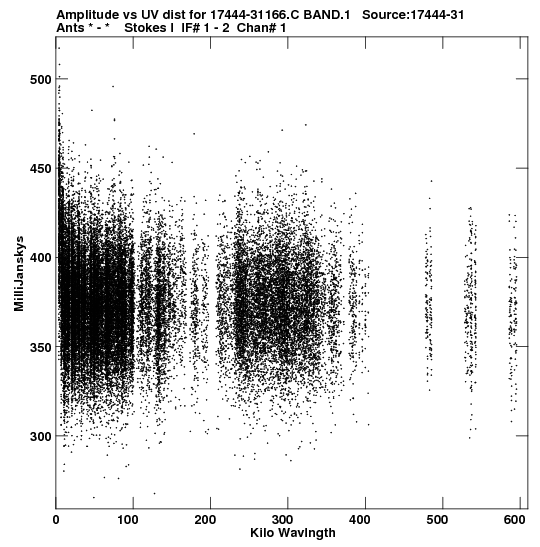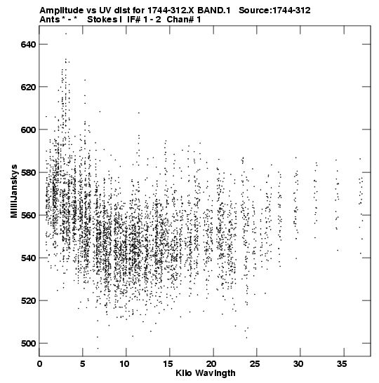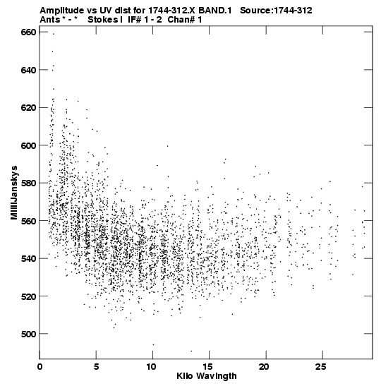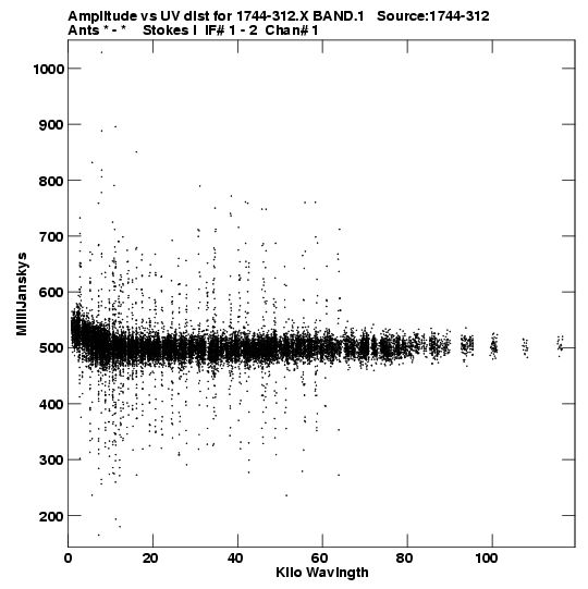 • Links is a collection of links that will show you the GIF uv-coverage and visibility plot for this data set in pop-up windows. See the README file on how to interpret these plots. They'll also get you to the project pipelining scripts and information log files as well as the full multi-source archive data on this project.