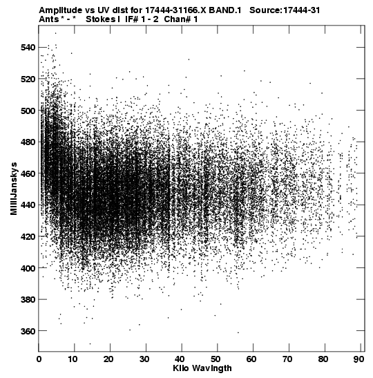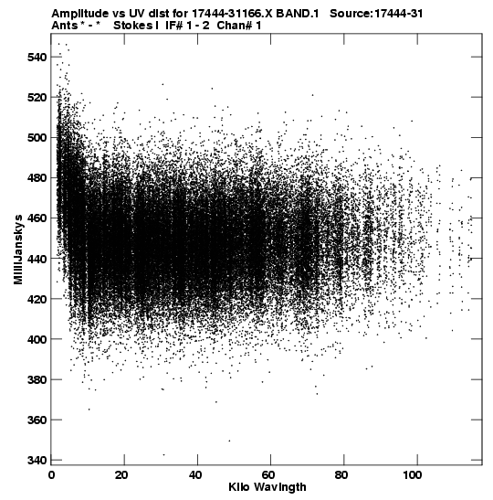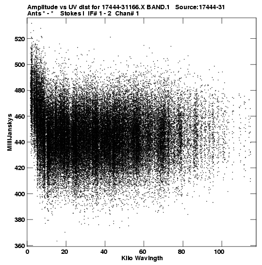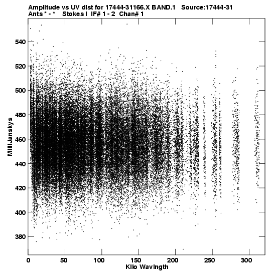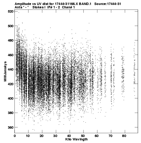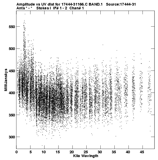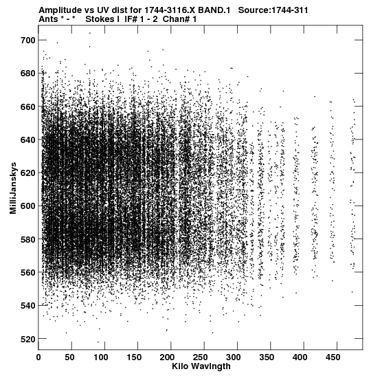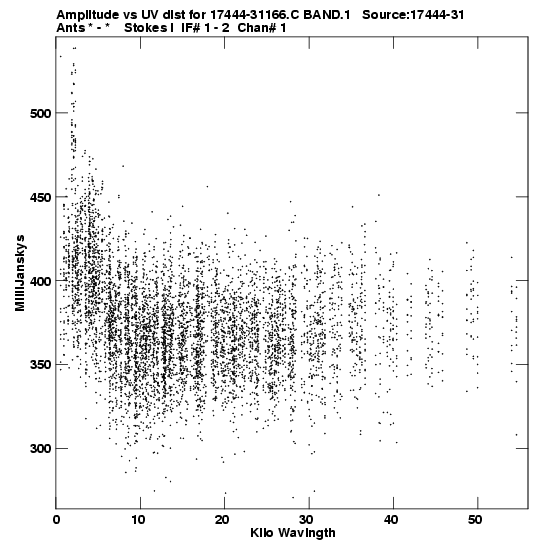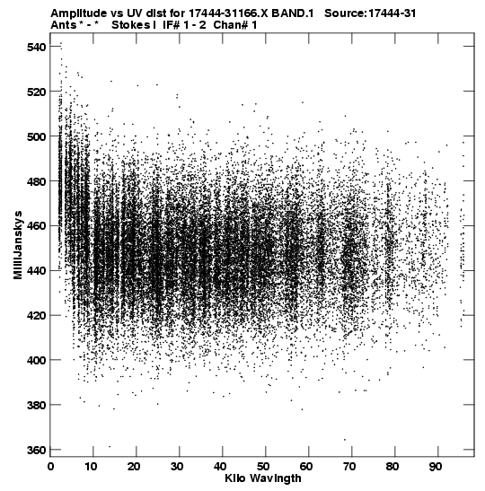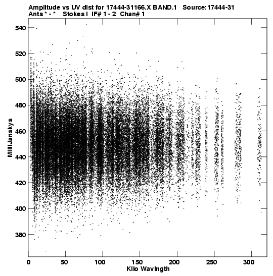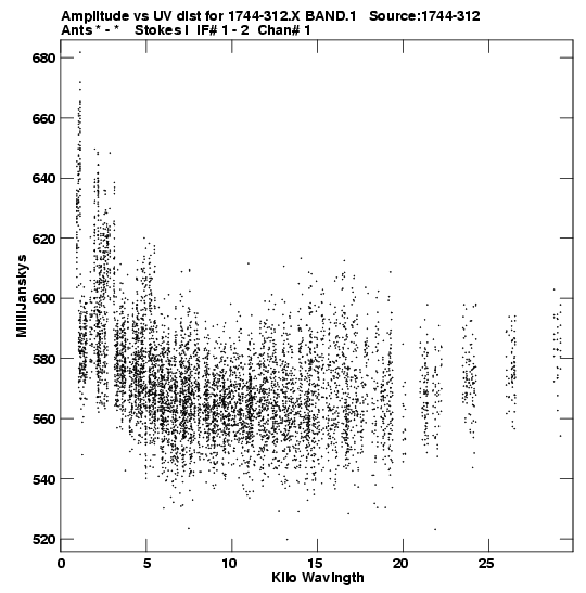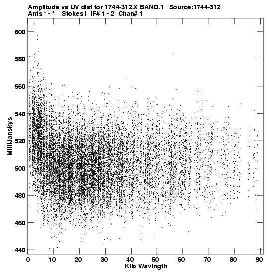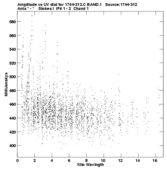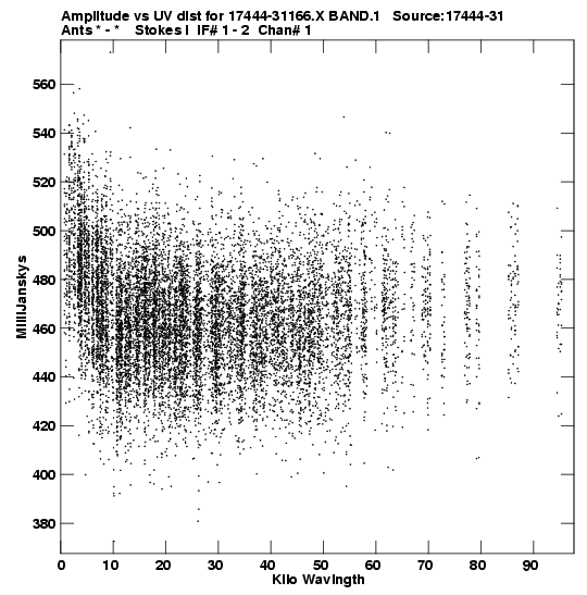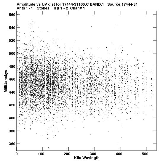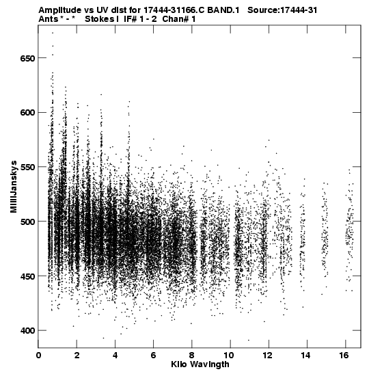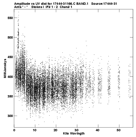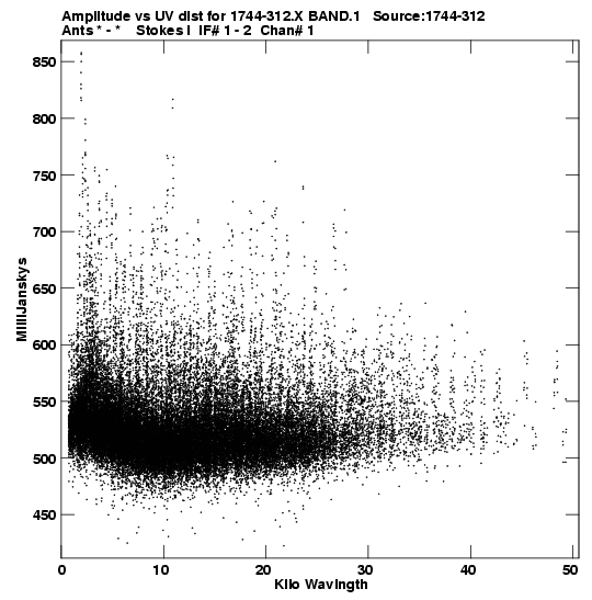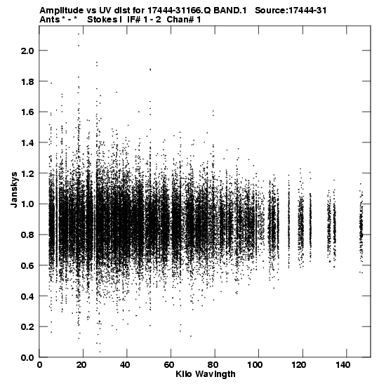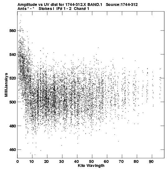 • Links is a collection of links that will show you the GIF uv-coverage and visibility plot for this data set in pop-up windows. See the README file on how to interpret these plots. They'll also get you to the project pipelining scripts and information log files as well as the full multi-source archive data on this project.