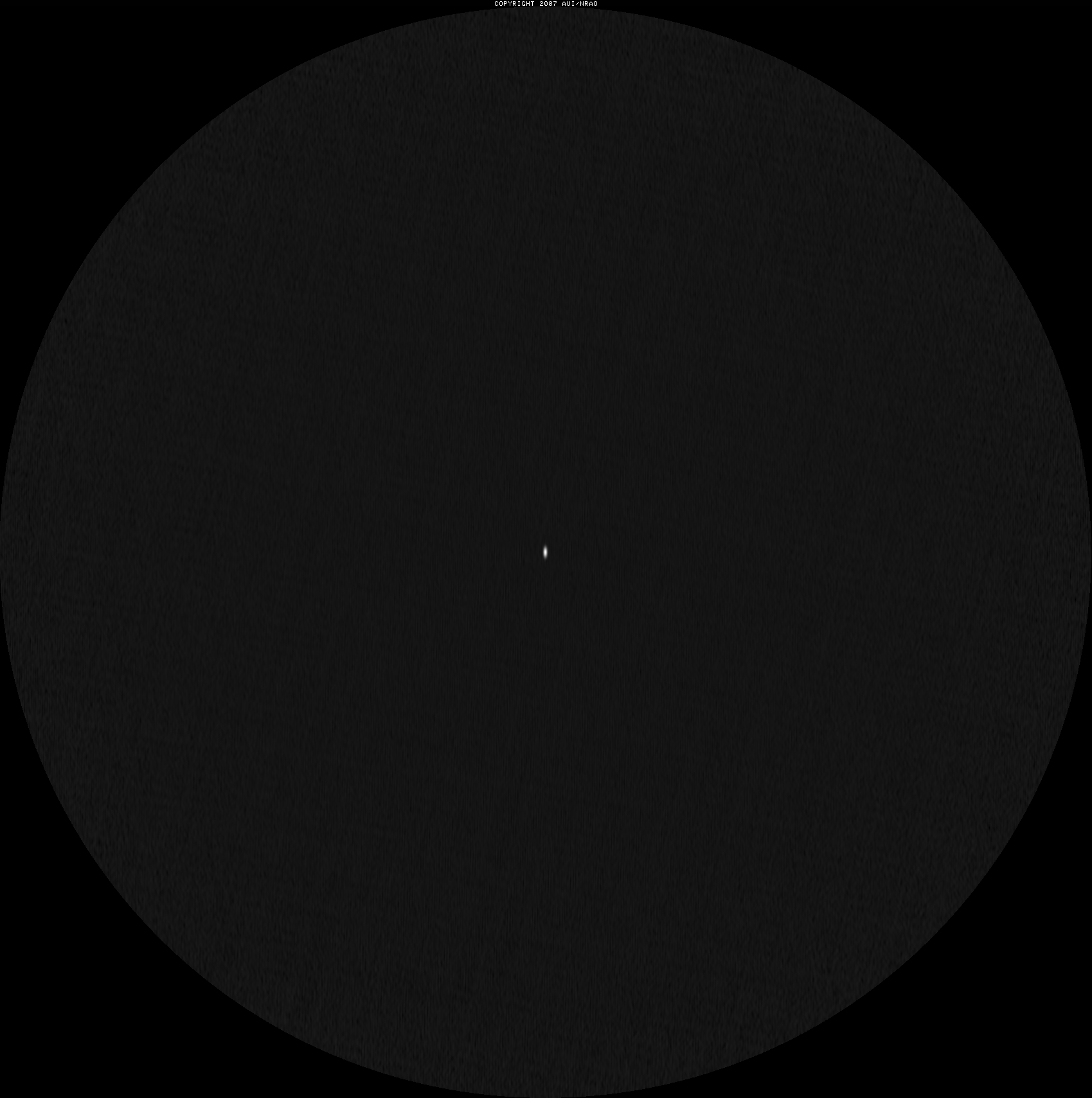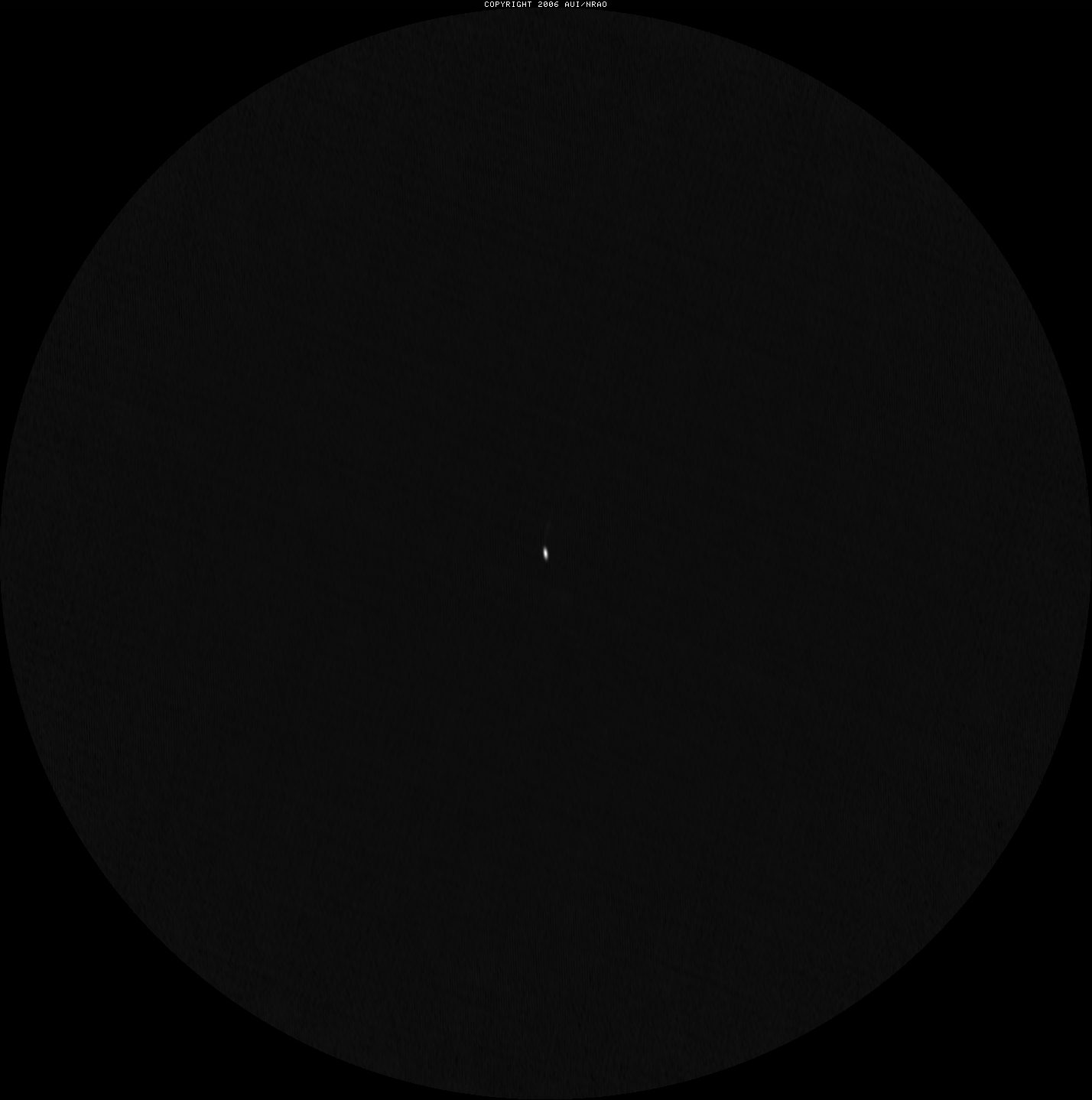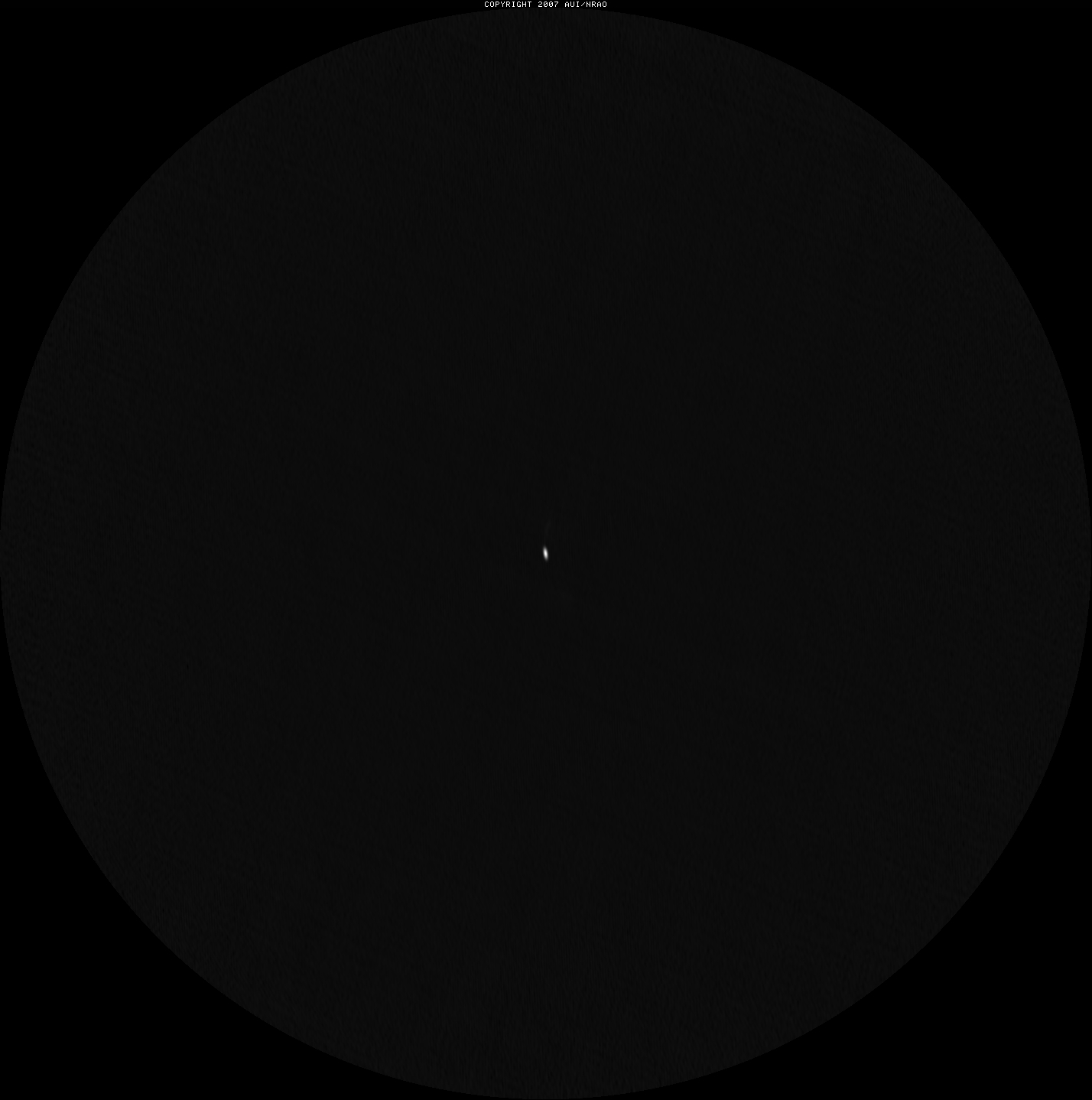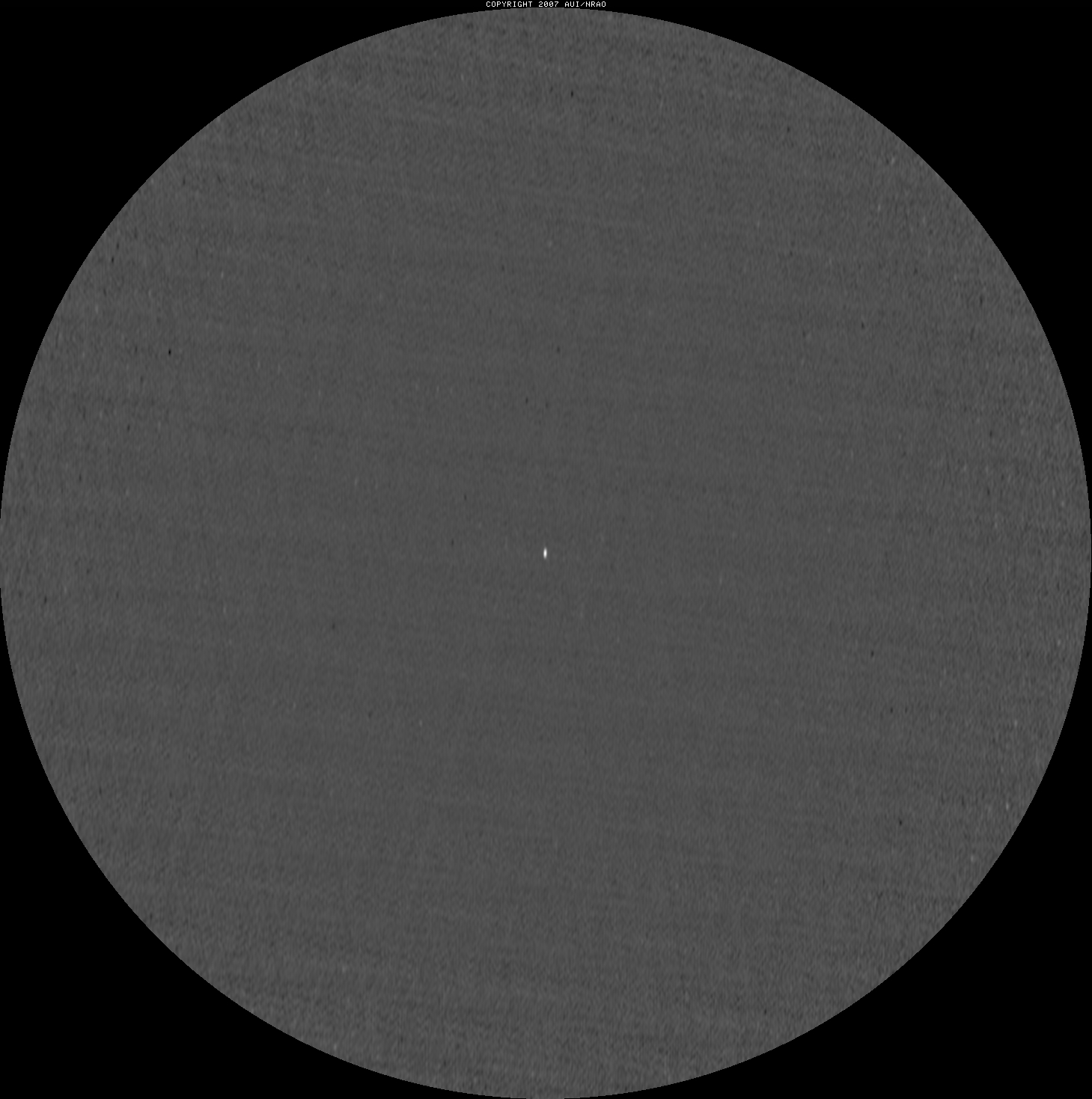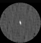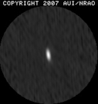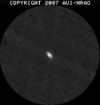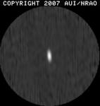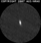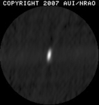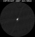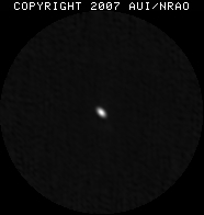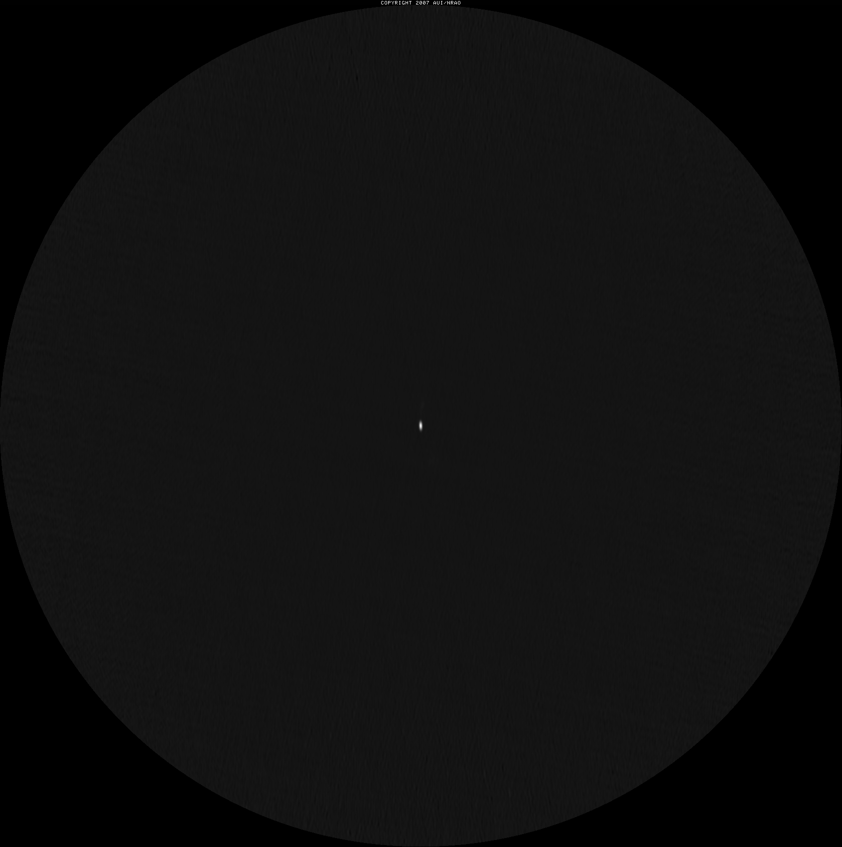 • JPEG shows a thumbnail of the pipeline image. Clicking it will show you a larger version in the browser. Both JPEG images have a square transfer function to emphasize the lower levels a bit more; do not use the JPEGs for scientific purposes (see next). As a guideline, the lighter a thumbnail, the less difference between the peak flux density and the rms noise level, i.e., don't expect to see too much in in light gray images, especially if the rms noise given in the next column is in the order of microJy or less. On the other hand, dark images have a strong source in there somewhere.. (try looking in the center of the image).