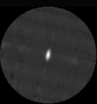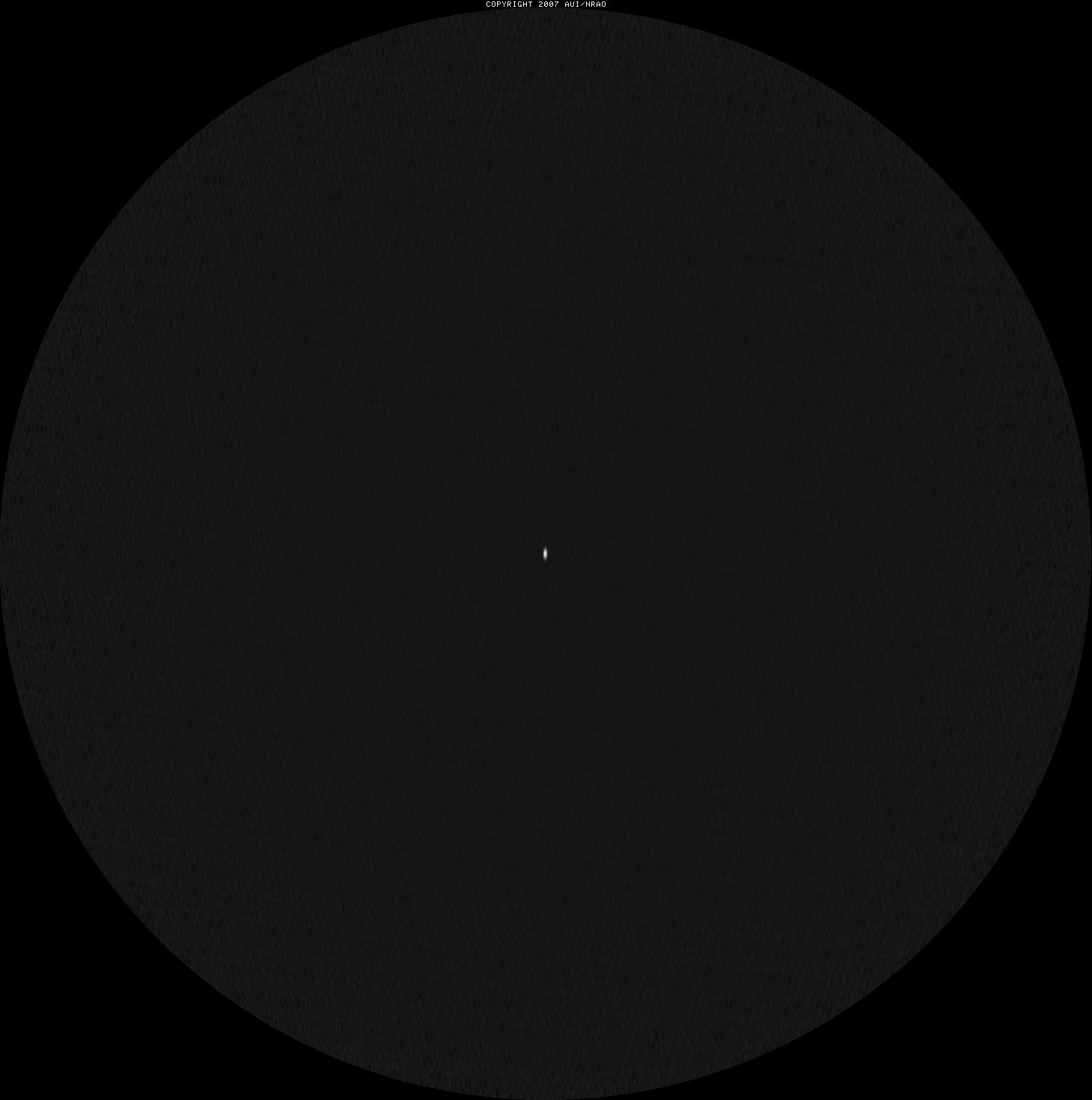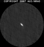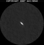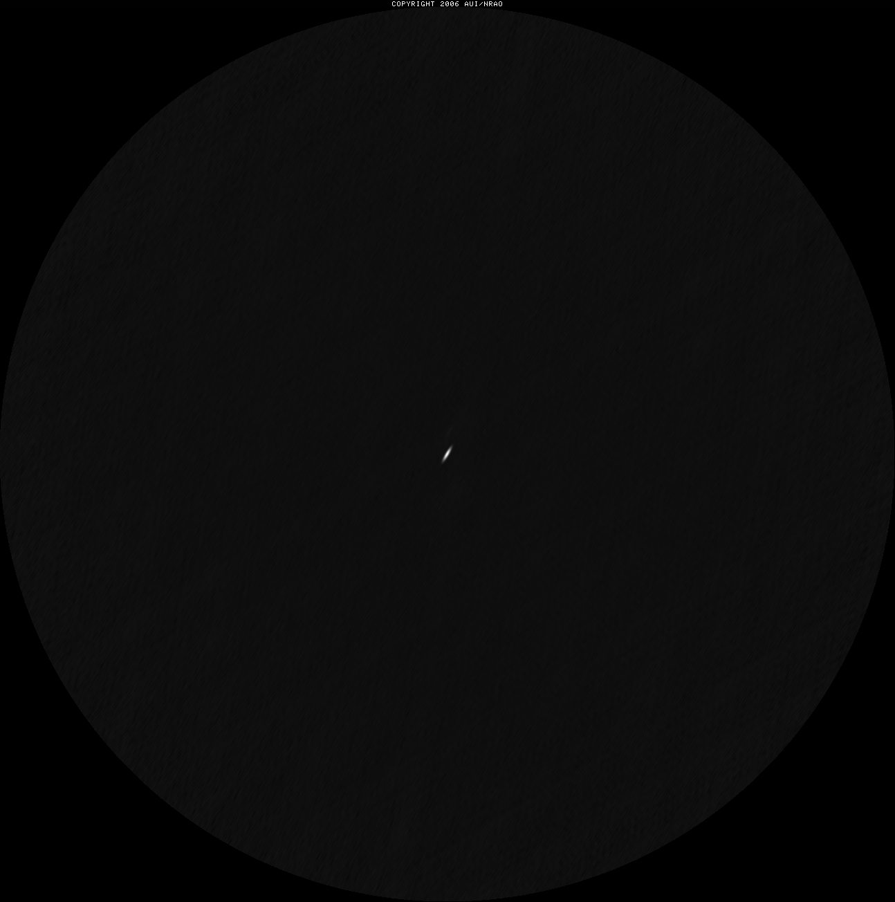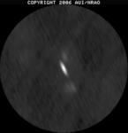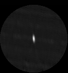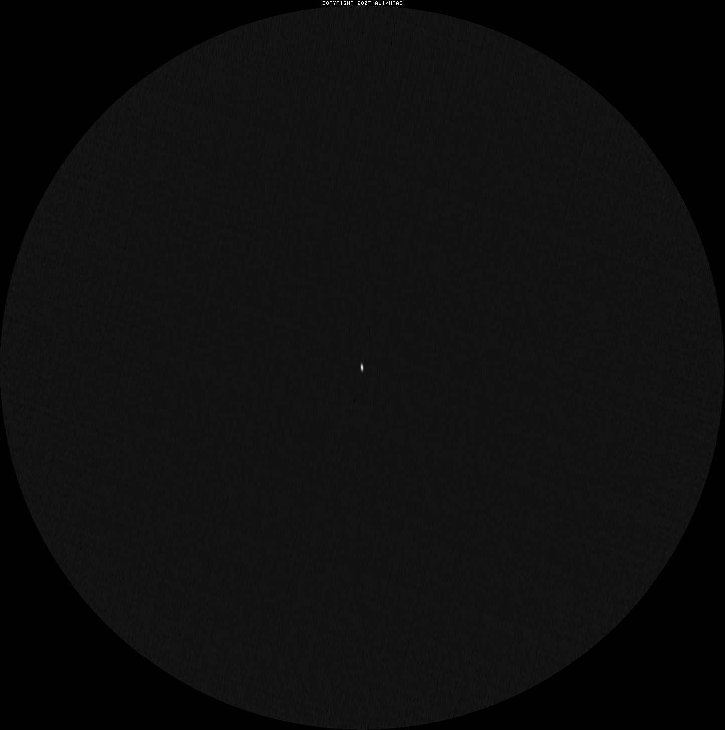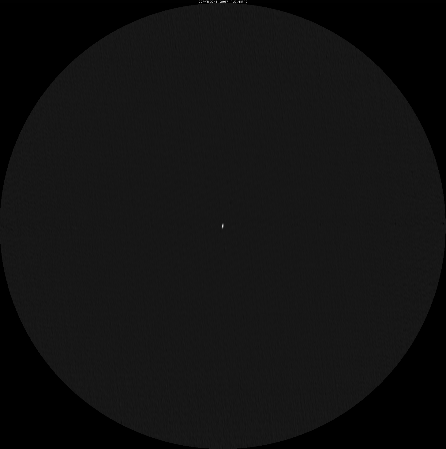 • JPEG shows a thumbnail of the pipeline image. Clicking it will show you a larger version in the browser. Both JPEG images have a square transfer function to emphasize the lower levels a bit more; do not use the JPEGs for scientific purposes (see next). As a guideline, the lighter a thumbnail, the less difference between the peak flux density and the rms noise level, i.e., don't expect to see too much in in light gray images, especially if the rms noise given in the next column is in the order of microJy or less. On the other hand, dark images have a strong source in there somewhere.. (try looking in the center of the image).