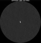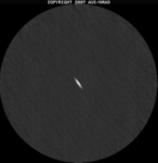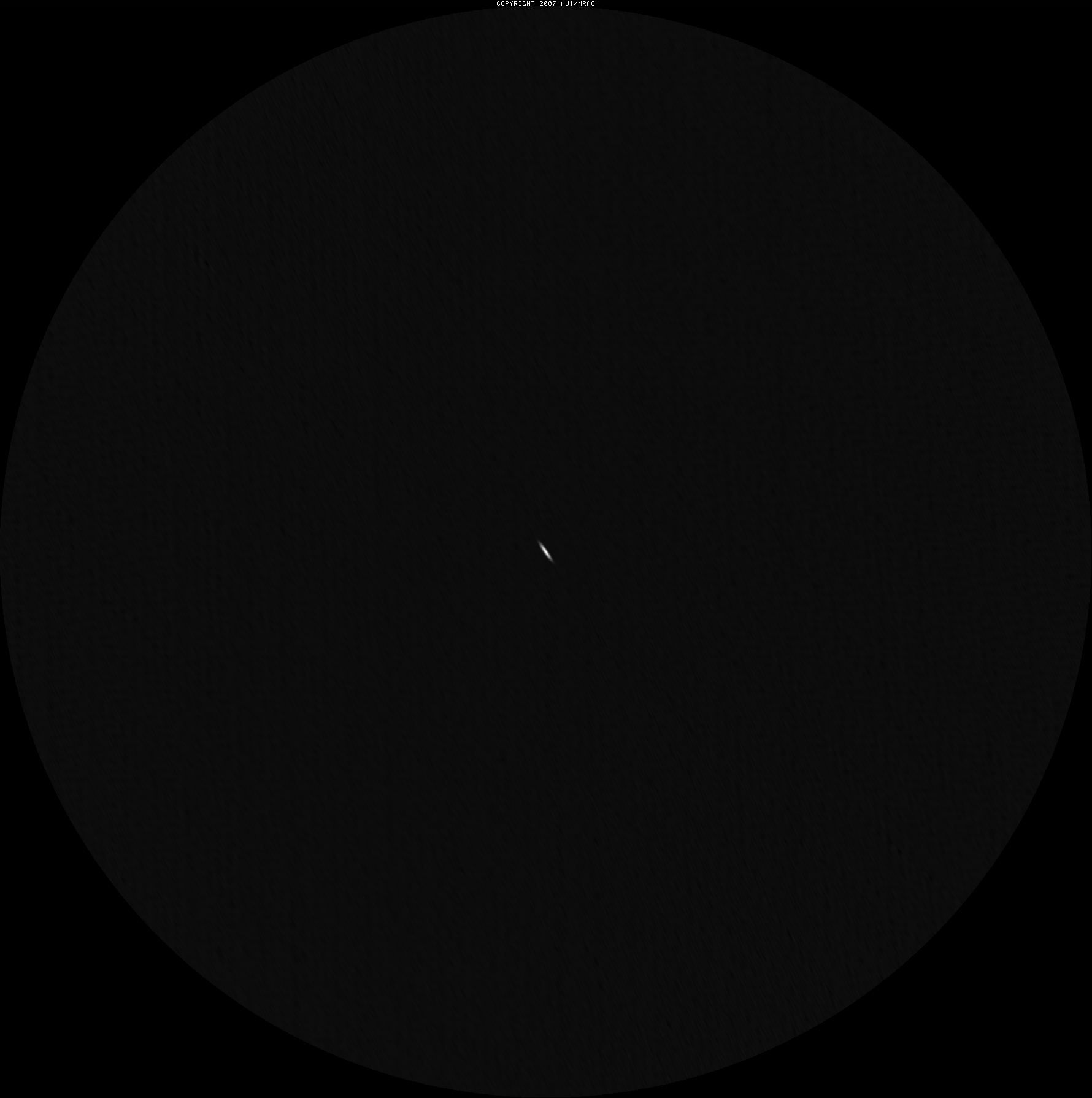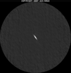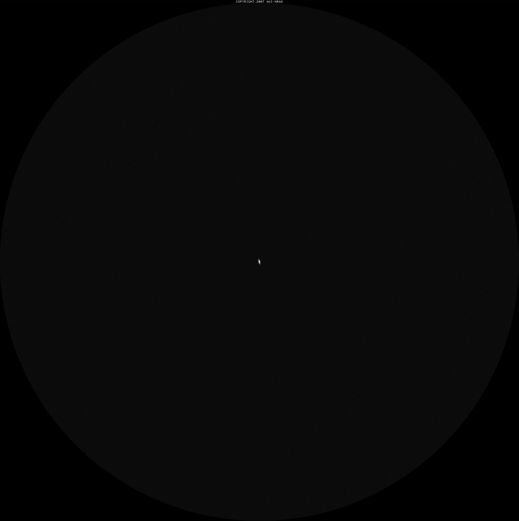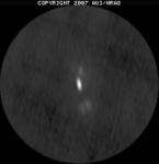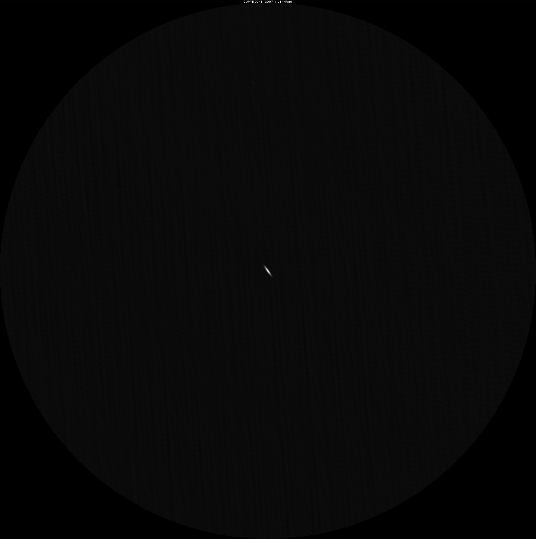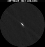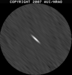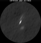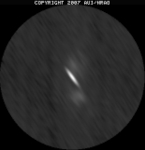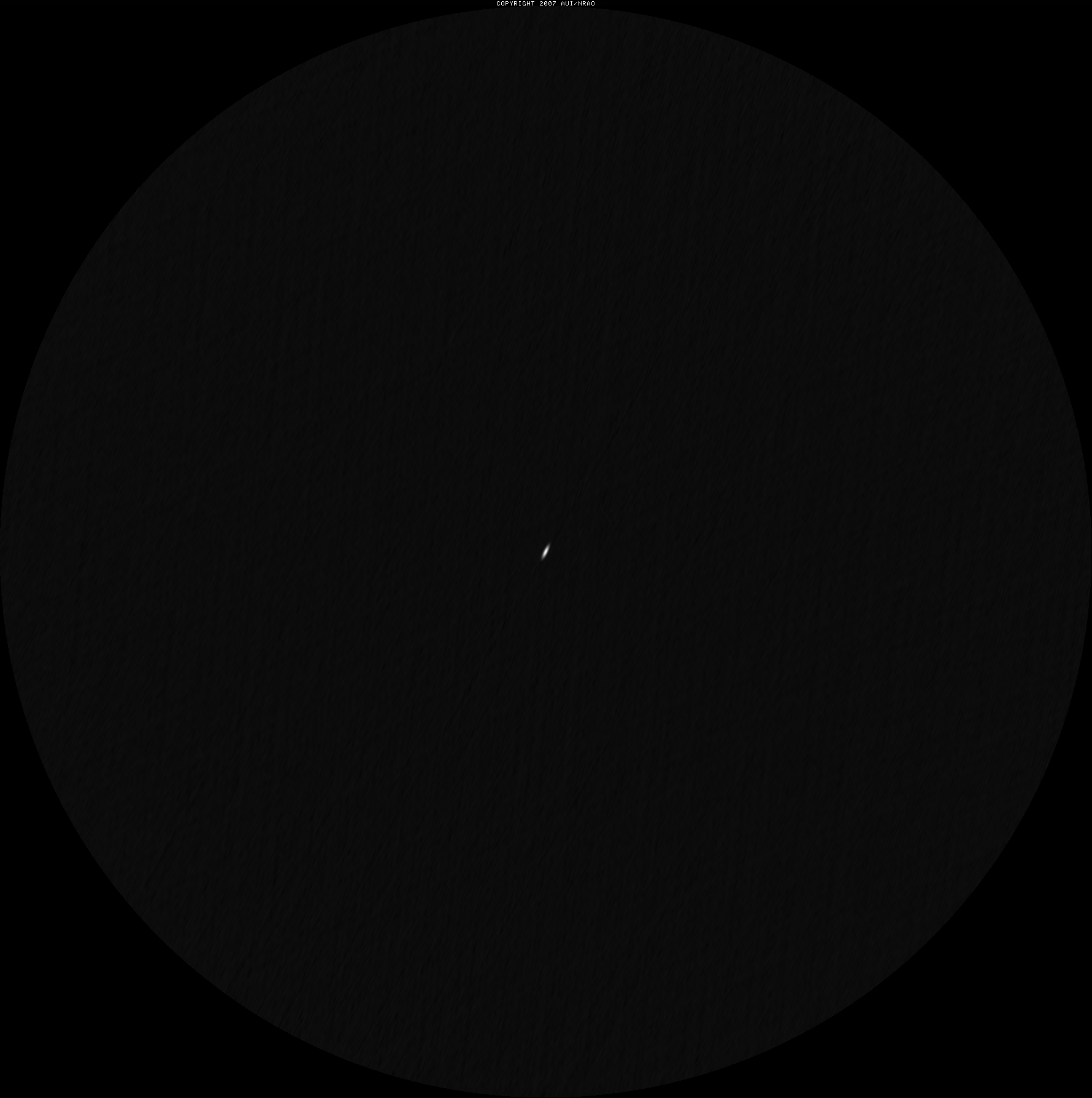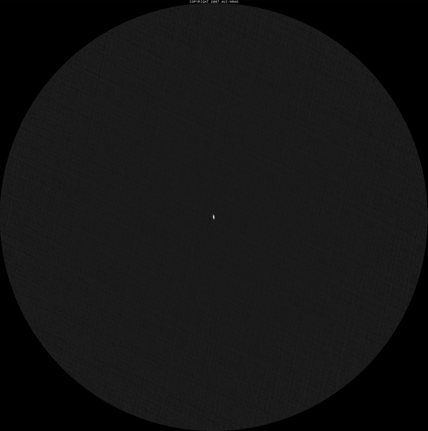 • JPEG shows a thumbnail of the pipeline image. Clicking it will show you a larger version in the browser. Both JPEG images have a square transfer function to emphasize the lower levels a bit more; do not use the JPEGs for scientific purposes (see next). As a guideline, the lighter a thumbnail, the less difference between the peak flux density and the rms noise level, i.e., don't expect to see too much in in light gray images, especially if the rms noise given in the next column is in the order of microJy or less. On the other hand, dark images have a strong source in there somewhere.. (try looking in the center of the image).
