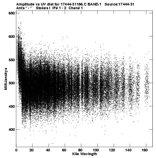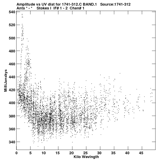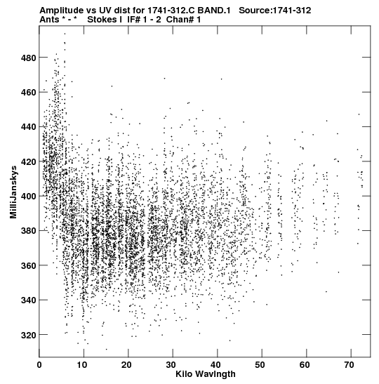 • UV Info lists the observed polarizations, shortest and longest VLA-arms (D=1km, C=3km, B=11km, A=36km, P=Pie Town link=75km), number of antennas used in the observation (though some may have been flagged as bad), the subarray setting of the array (1-5), a link to the calibrated single source uv FITS file and it's size (in red).