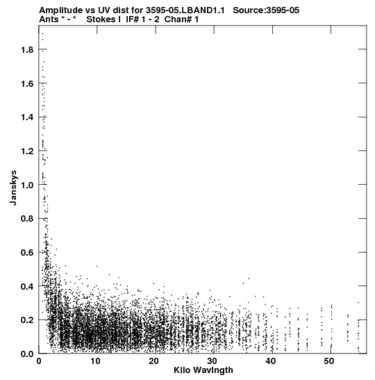 the calibrated single source uv FITS file and it's size (in red).