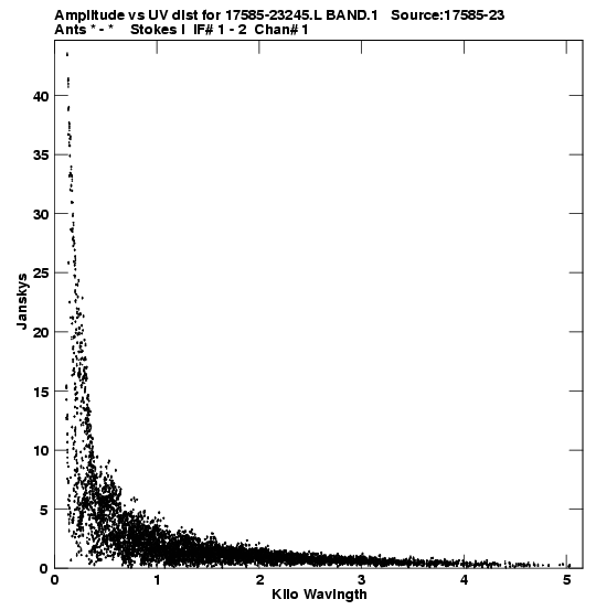 angle, the approximate noise level in prefixed units of Jansky, and a