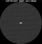 • JPEG shows a thumbnail of the pipeline image. Clicking it will show you a larger version in the browser. Both JPEG images have a square transfer function to emphasize the lower levels a bit more; do not use the JPEGs for scientific purposes (see next). As a guideline, the lighter a thumbnail, the less difference between the peak flux density and the rms noise level, i.e., don't expect to see too much in in light gray images, especially if the rms noise given in the next column is in the order of microJy or less. On the other hand, dark images have a strong source in there somewhere.. (try looking in the center of the image).