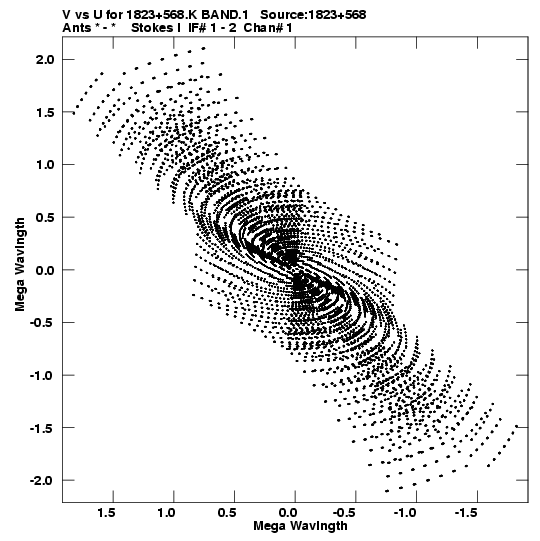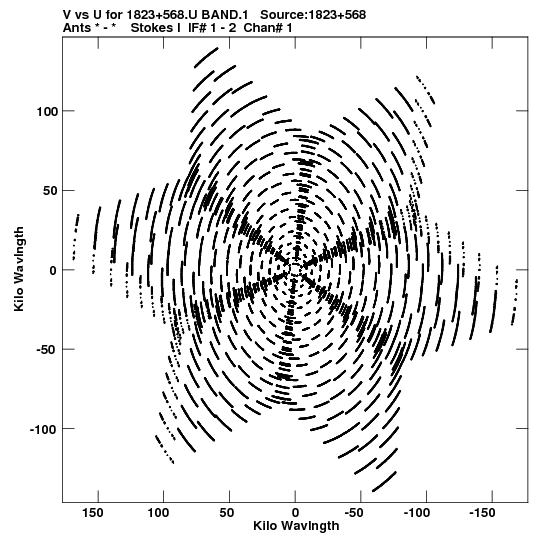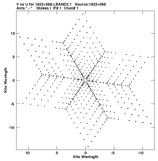 • Links is a collection of links that will show you the GIF uv-coverage and visibility plot for this data set in pop-up windows. See the README file on how to interpret these plots. They'll also get you to the project pipelining scripts and information log files as well as the full multi-source archive data on this project.