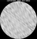 angle, the approximate noise level in prefixed units of Jansky, and a