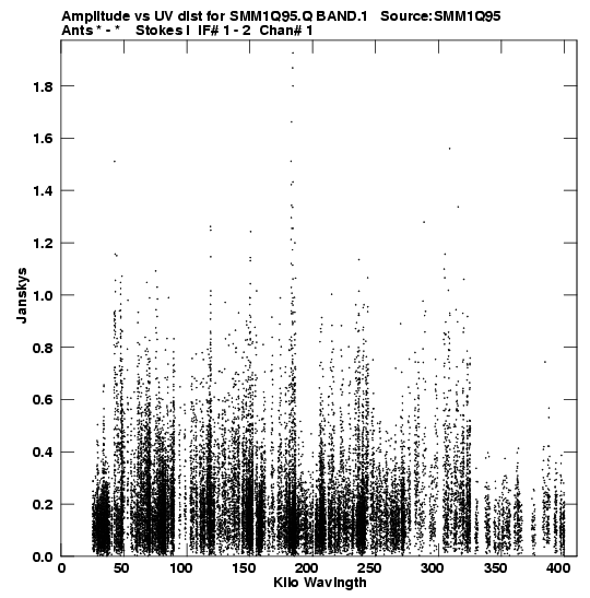 the calibrated single source uv FITS file and it's size (in red).