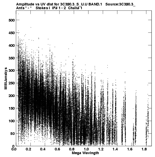 angle, the approximate noise level in prefixed units of Jansky, and a