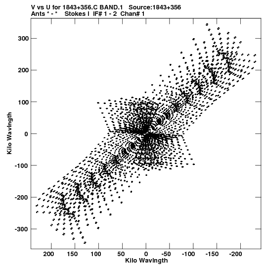 • Links is a collection of links that will show you the GIF uv-coverage and visibility plot for this data set in pop-up windows. See the README file on how to interpret these plots. They'll also get you to the project pipelining scripts and information log files as well as the full multi-source archive data on this project.