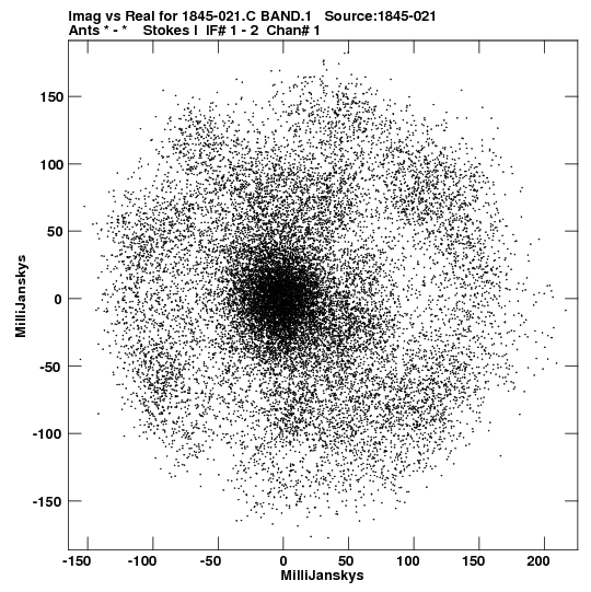 angle, the approximate noise level in prefixed units of Jansky, and a