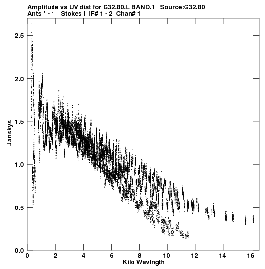 • Links is a collection of links that will show you the GIF uv-coverage and visibility plot for this data set in pop-up windows. See the README file on how to interpret these plots. They'll also get you to the project pipelining scripts and information log files as well as the full multi-source archive data on this project.