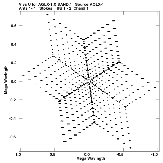 • Links is a collection of links that will show you the GIF uv-coverage and visibility plot for this data set in pop-up windows. See the README file on how to interpret these plots. They'll also get you to the project pipelining scripts and information log files as well as the full multi-source archive data on this project.