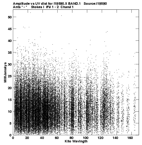 angle, the approximate noise level in prefixed units of Jansky, and a