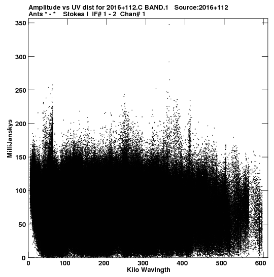 • UV Info lists the observed polarizations, shortest and longest VLA-arms (D=1km, C=3km, B=11km, A=36km, P=Pie Town link=75km), number of antennas used in the observation (though some may have been flagged as bad), the subarray setting of the array (1-5), a link to the calibrated single source uv FITS file and it's size (in red).
