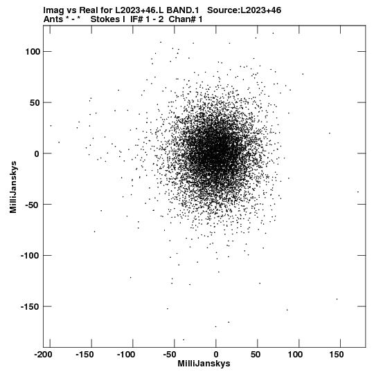 angle, the approximate noise level in prefixed units of Jansky, and a