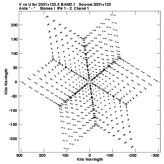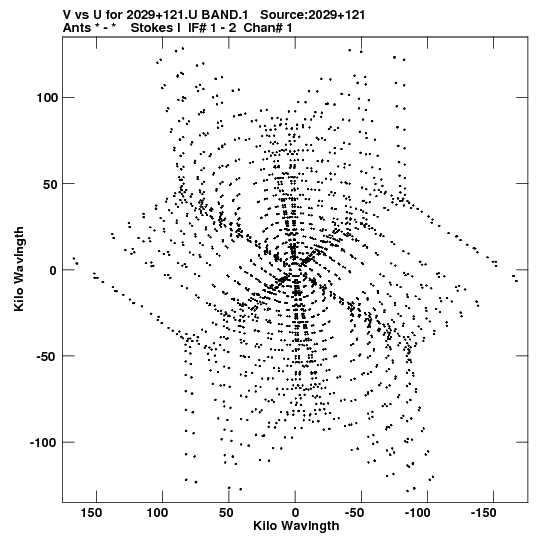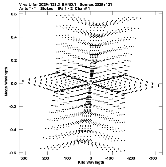 • Links is a collection of links that will show you the GIF uv-coverage and visibility plot for this data set in pop-up windows. See the README file on how to interpret these plots. They'll also get you to the project pipelining scripts and information log files as well as the full multi-source archive data on this project.