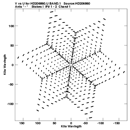 • Links is a collection of links that will show you the GIF uv-coverage and visibility plot for this data set in pop-up windows. See the README file on how to interpret these plots. They'll also get you to the project pipelining scripts and information log files as well as the full multi-source archive data on this project.