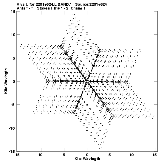 • Links is a collection of links that will show you the GIF uv-coverage and visibility plot for this data set in pop-up windows. See the README file on how to interpret these plots. They'll also get you to the project pipelining scripts and information log files as well as the full multi-source archive data on this project.