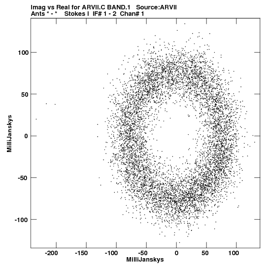 angle, the approximate noise level in prefixed units of Jansky, and a