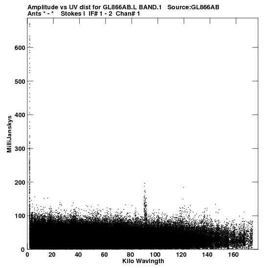 angle, the approximate noise level in prefixed units of Jansky, and a