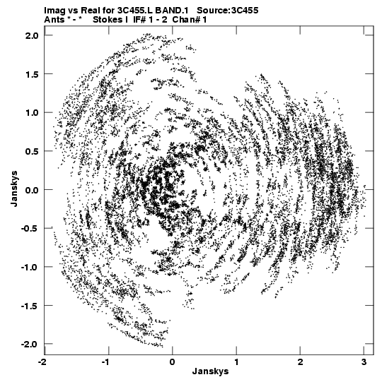 • Links is a collection of links that will show you the GIF uv-coverage and visibility plot for this data set in pop-up windows. See the README file on how to interpret these plots. They'll also get you to the project pipelining scripts and information log files as well as the full multi-source archive data on this project.