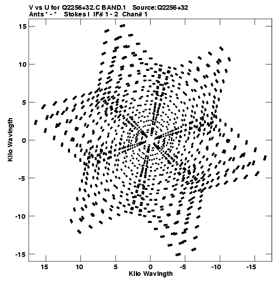 • Links is a collection of links that will show you the GIF uv-coverage and visibility plot for this data set in pop-up windows. See the README file on how to interpret these plots. They'll also get you to the project pipelining scripts and information log files as well as the full multi-source archive data on this project.