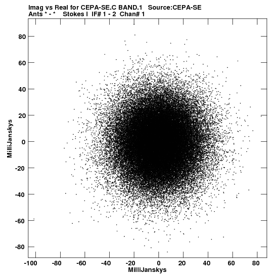 angle, the approximate noise level in prefixed units of Jansky, and a